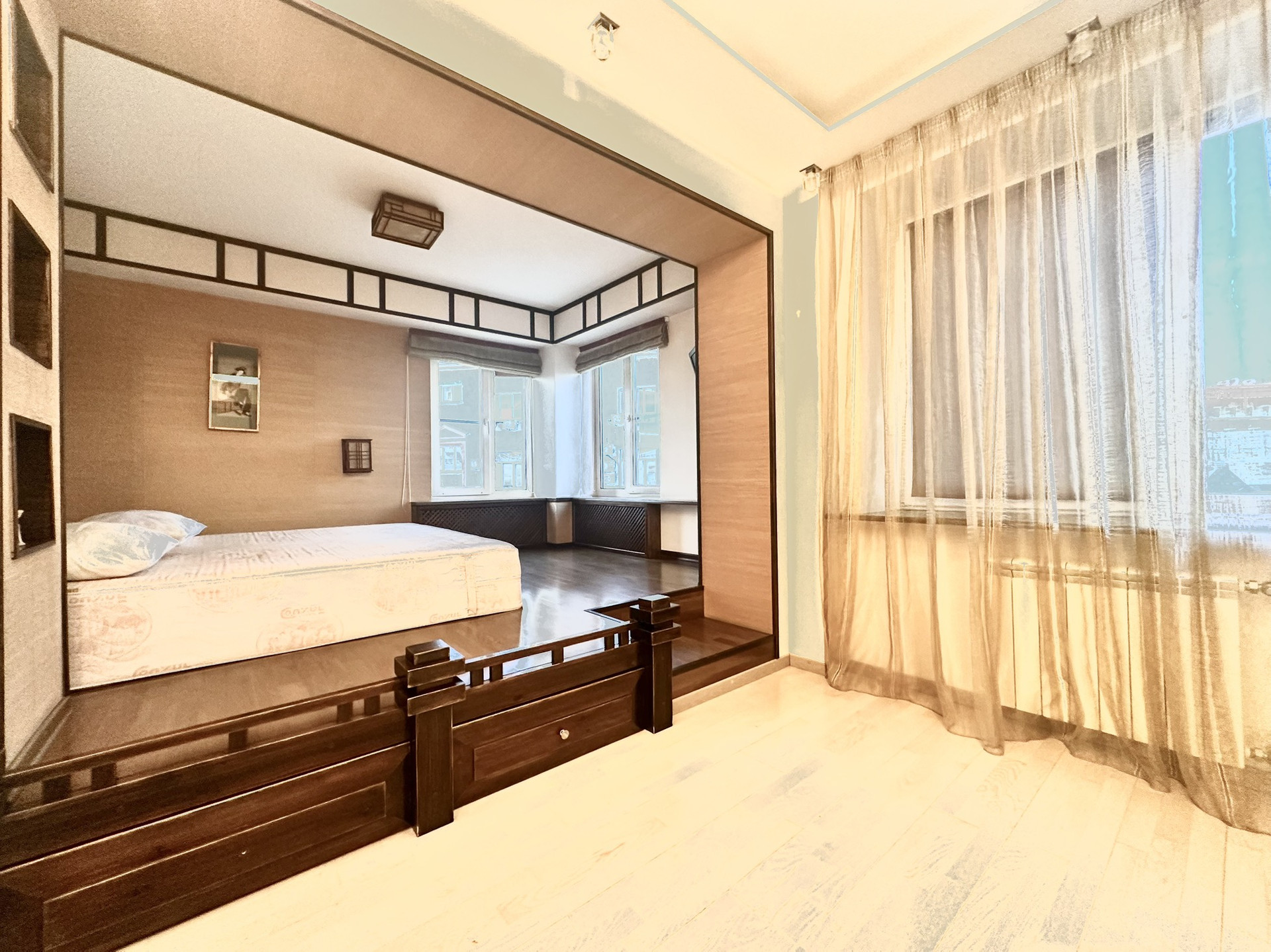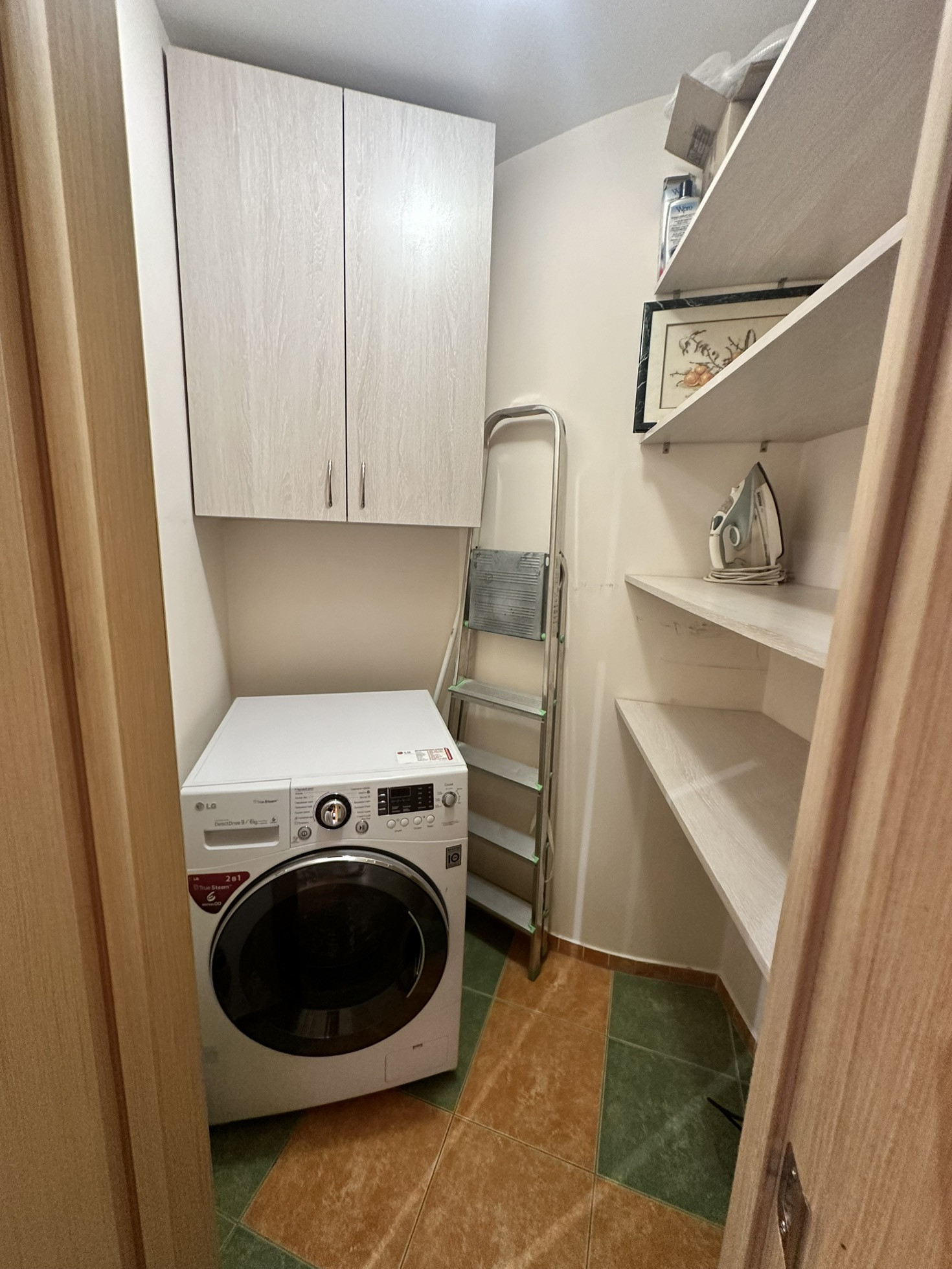 В большой спальне своя гардеробная комната. Есть подсобное помещение: постирочная-кладовая.