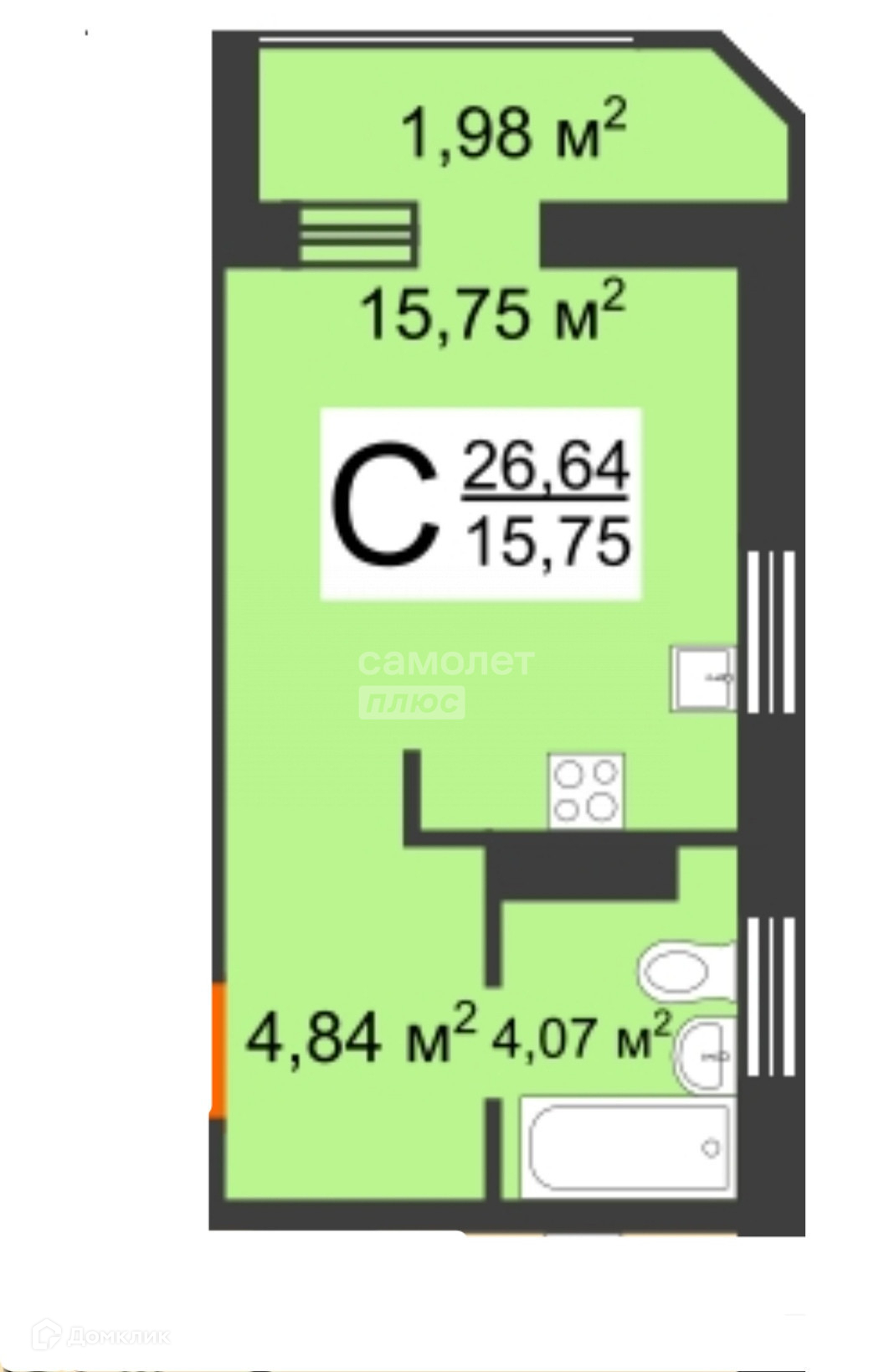 Общая площадь 27 м2