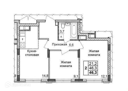 Общая площадь 46 м2