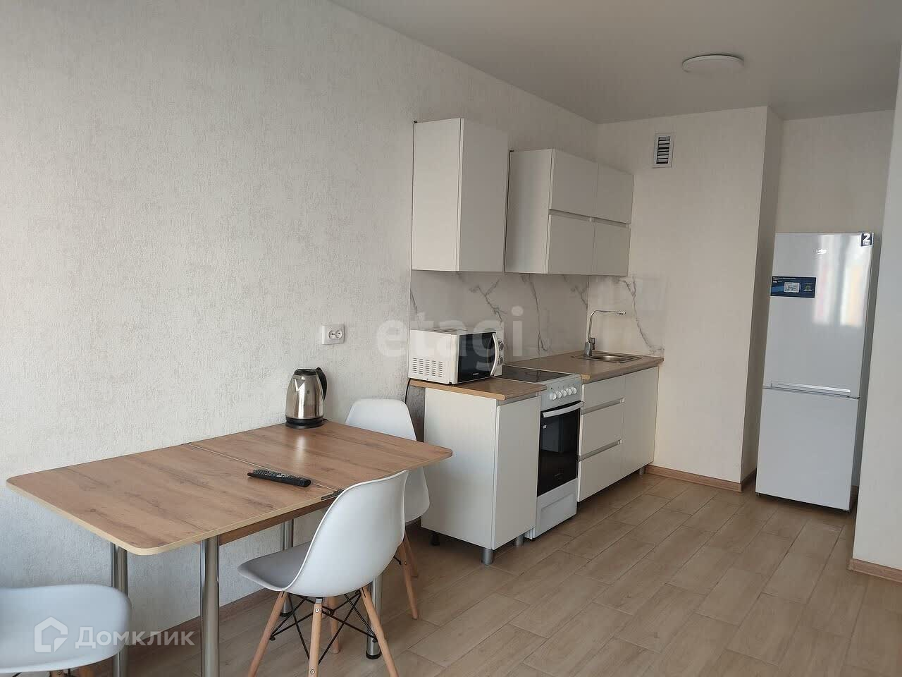 Квартира в отличном состоянии, сделан современный ремонт. Она полностью меблирована и оснащена бытовой техникой, в том числе: