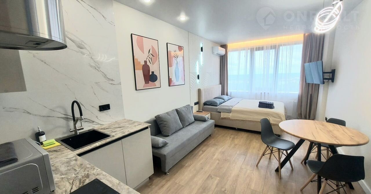 Сдается уютная студия в жилом доме бизнес-класса. Круглосуточная охрана, видеонаблюдение. Отличная транспортная развязка. Остановка у дома, напротив ТЦ Ганза. До центра 10 минут езды. Строго без животных!