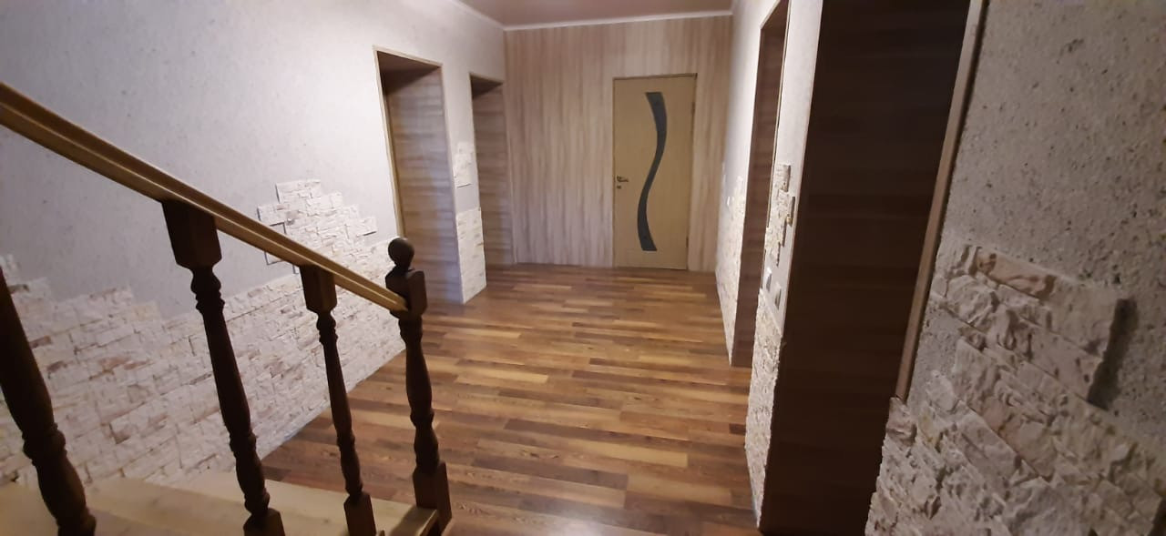 Просторный двухэтажный коттедж. В доме три комнаты и большая кухня-гостиная, два сан узла, гараж, баня, овощная яма, скважина, электроотопление, интернет, триколор тв, есть так же твердотопливный котел. Газ проводится, есть договор на проведение газа.