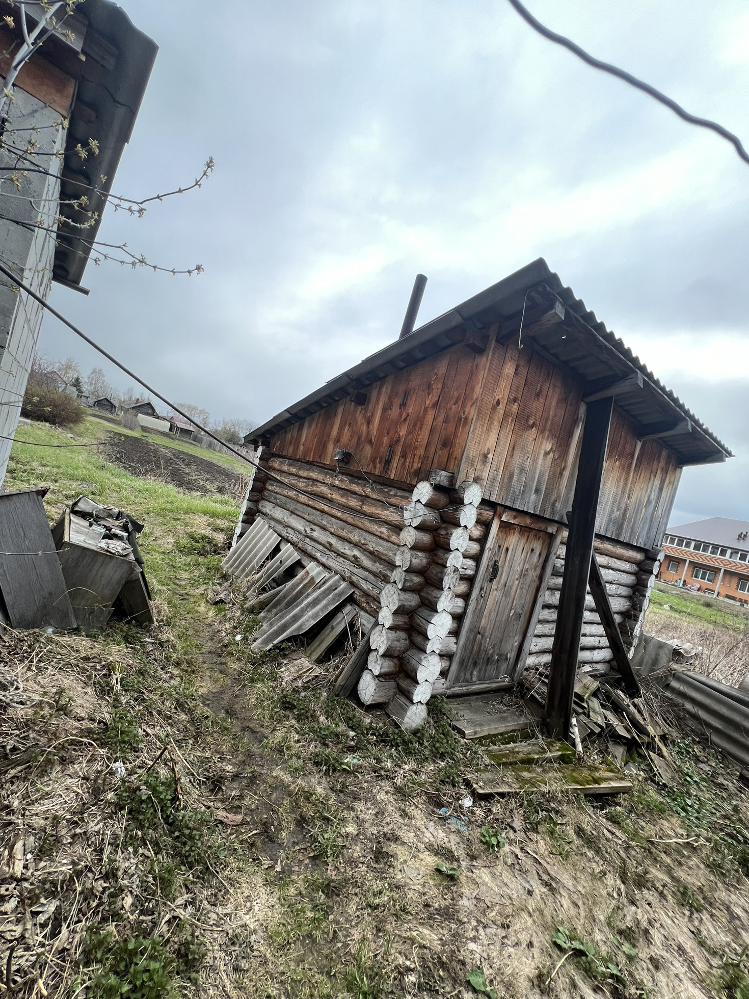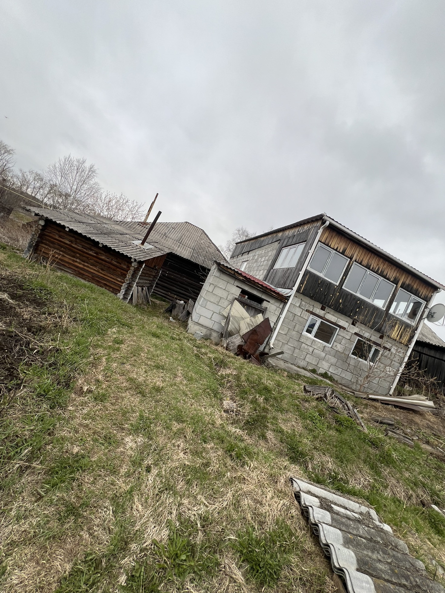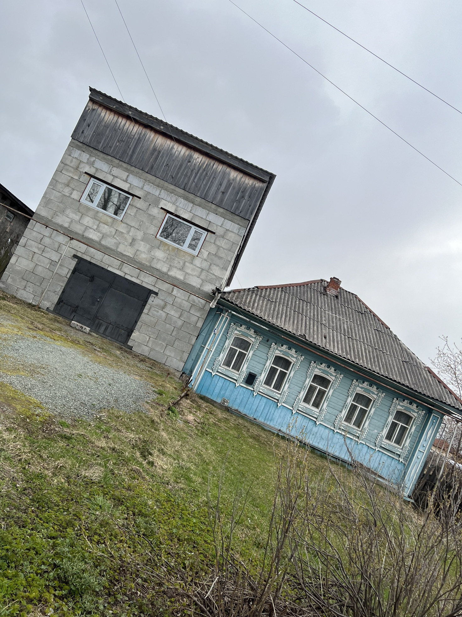Один дом жилой деревянный, второй недостроенный из пелистерол блока.
