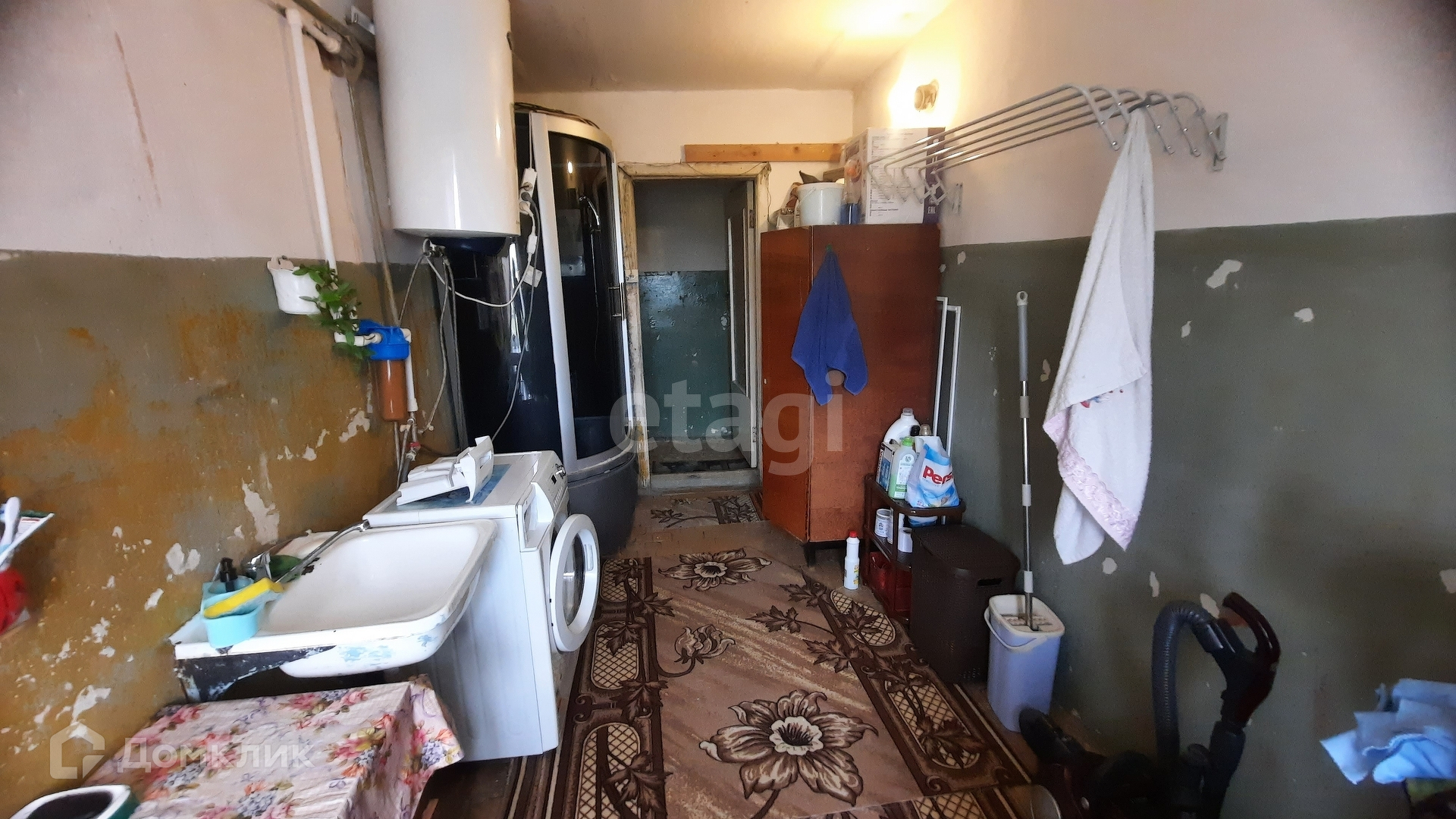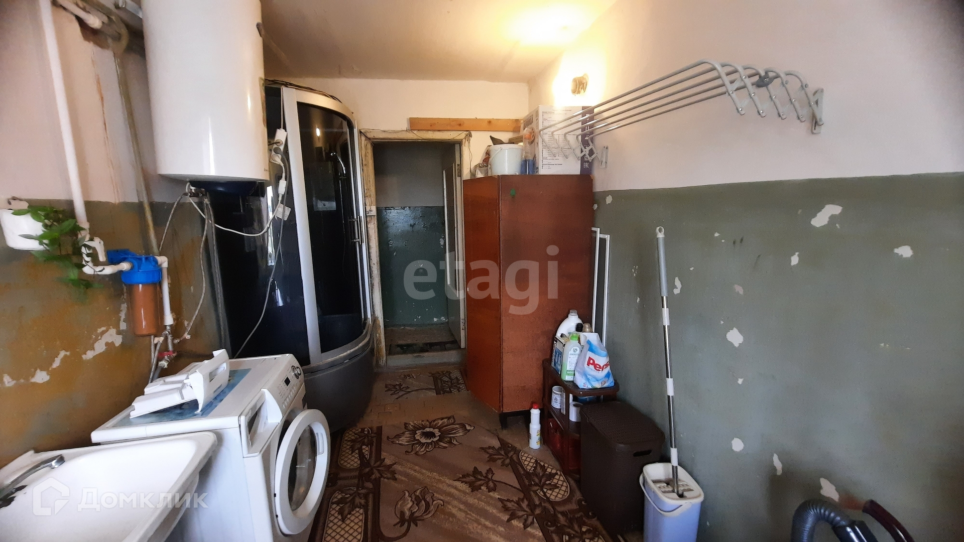 Есть одтельная моечная с душевой кабиной на этаже, которая закрывается на ключ.