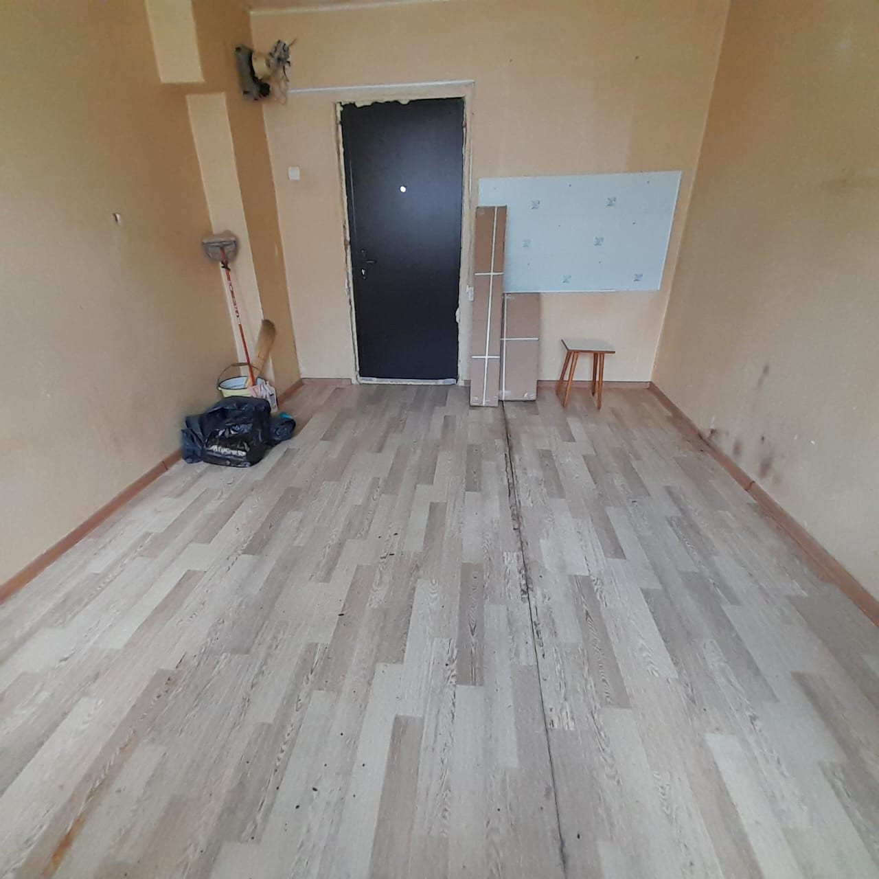 В комнате выполнен косметический ремонт, установлено пластиковое окна, входные сейф-двери. Электро счетчик заведен внутрь.