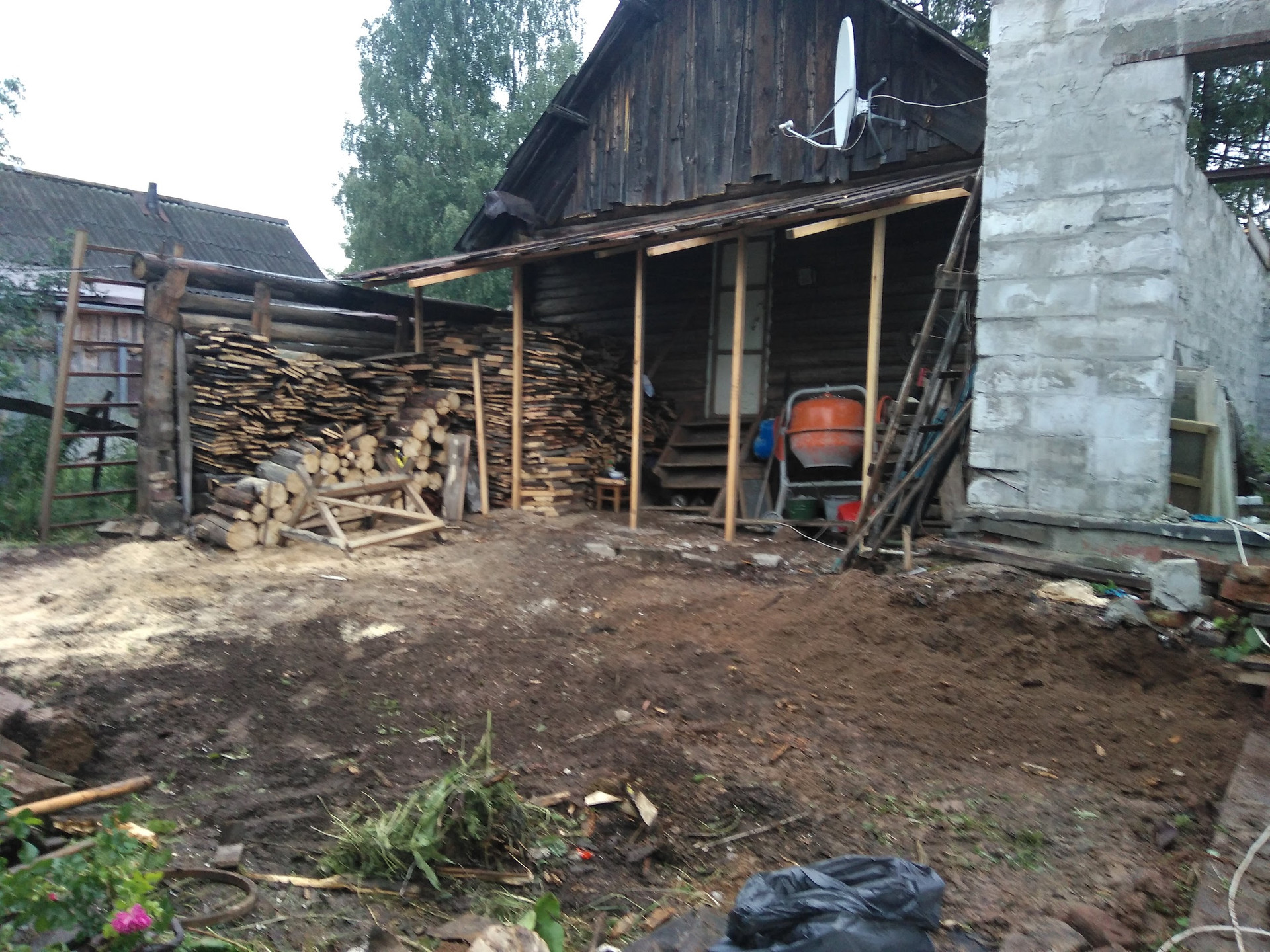 На участке есть летняя баня (стены бетонные).