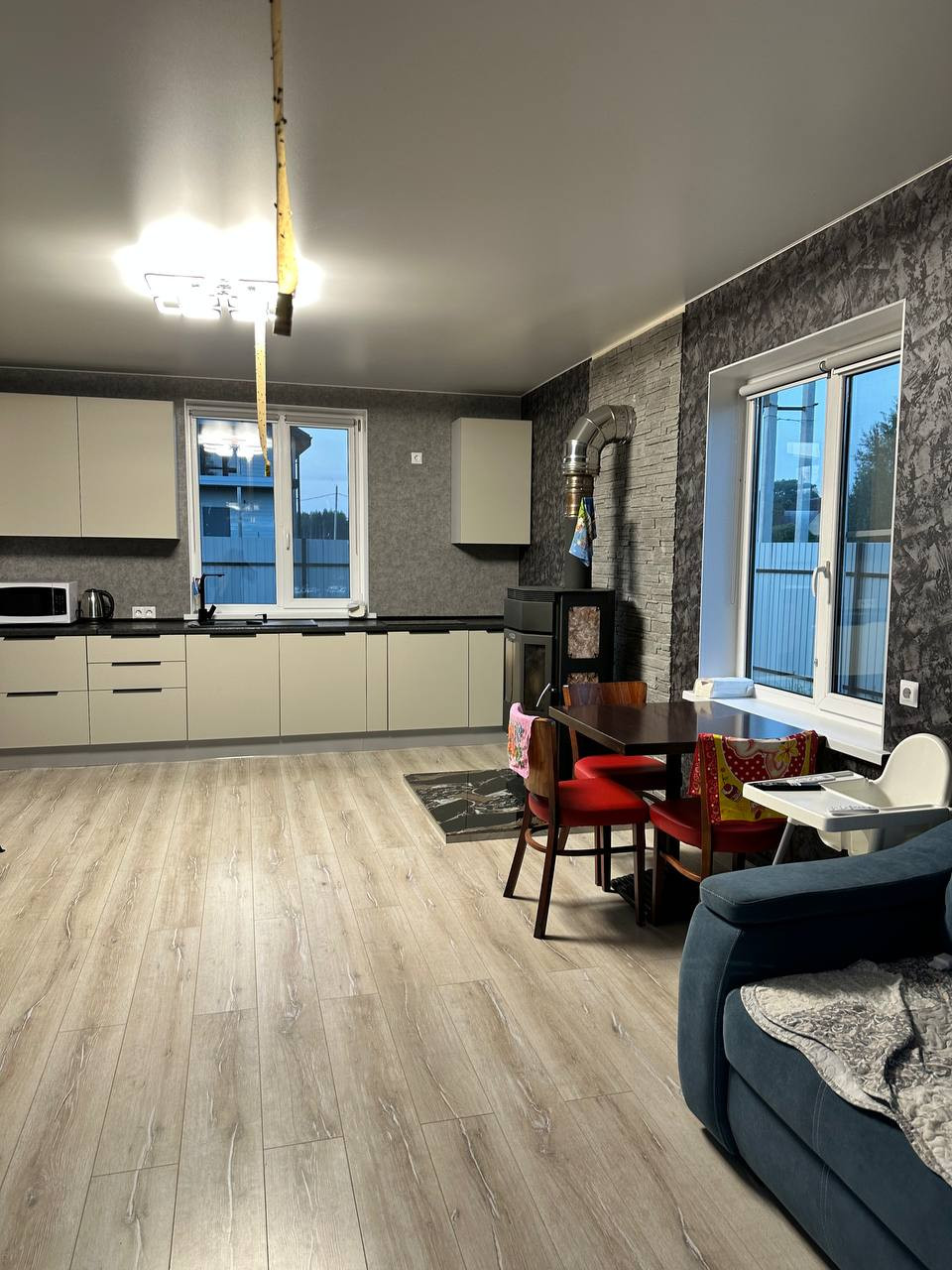 Дом очень уютный, полностью готов к проживанию, на втором этаже нужно немного доделать ремонт. В доме витражные окна, камин, что придаёт дому особую атмосферу! В доме комфортно в любое время года, есть тёплые полы! К котлу подключен температурный датчик, на котором выставляется комфортная для жильцов температура, дом прогревается до этой температуры в автоматическом режиме. + Электричество + Отопление: газ (газгольдер) + Магистральный газ - проведен до границы участка.
