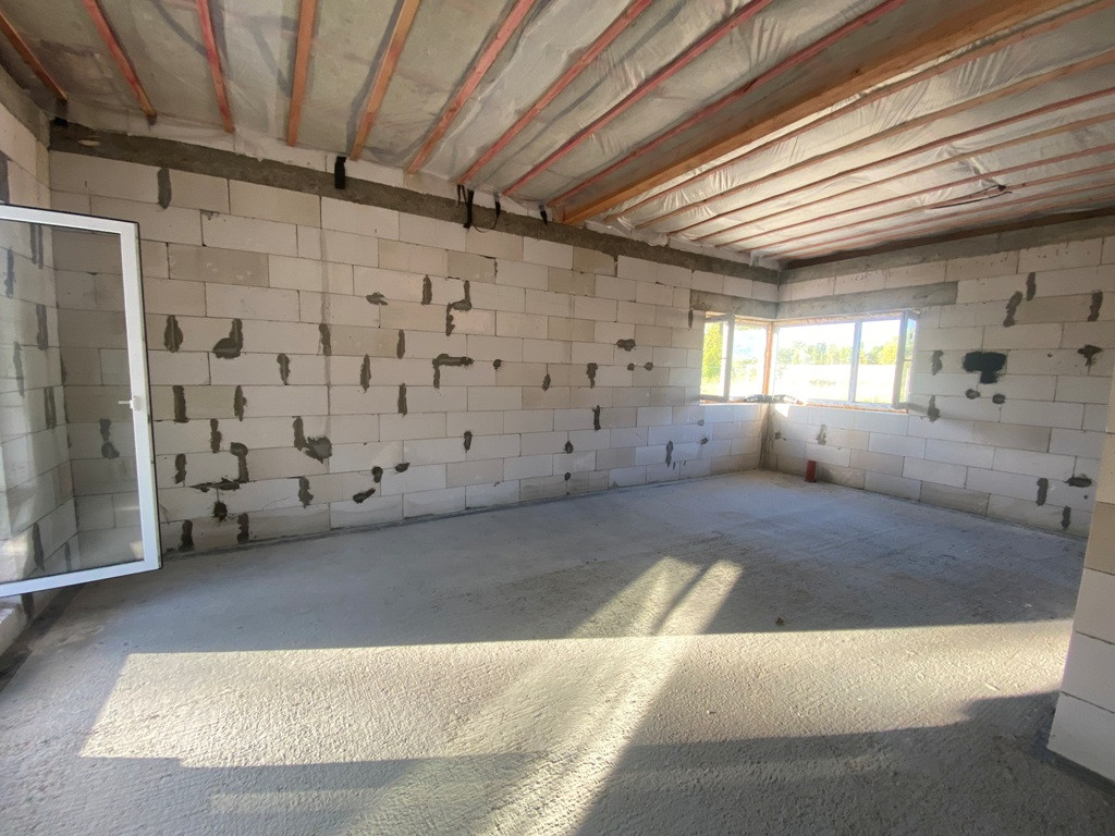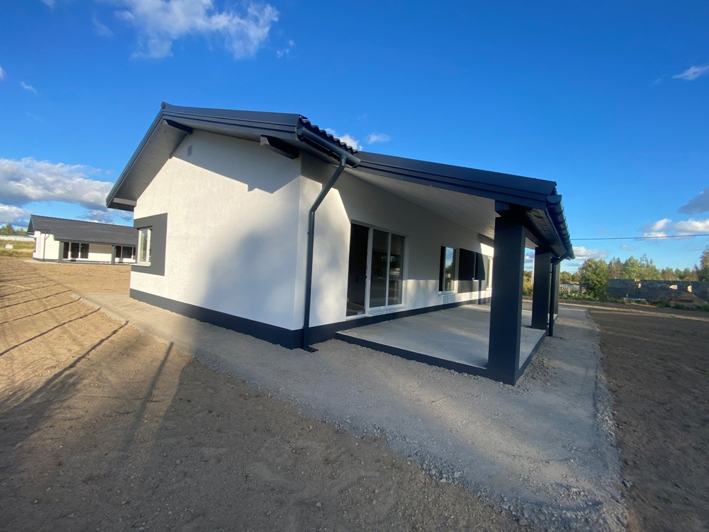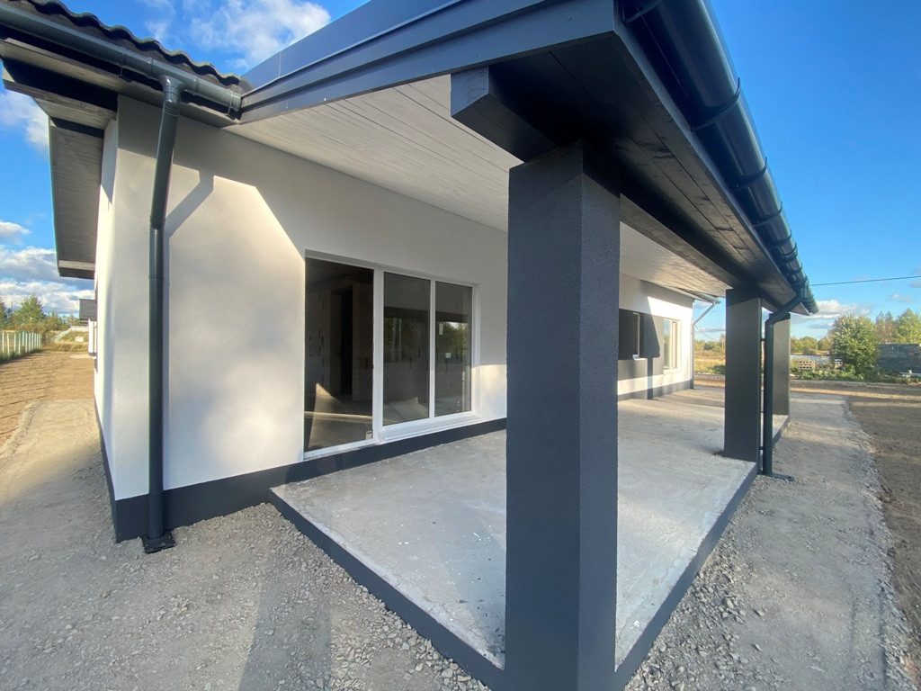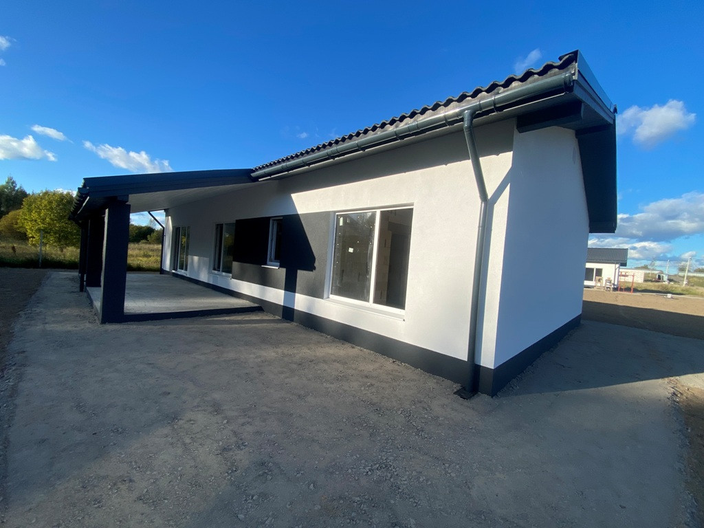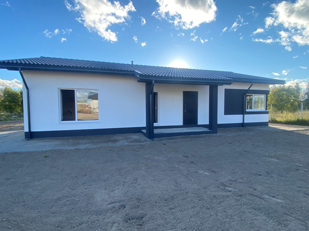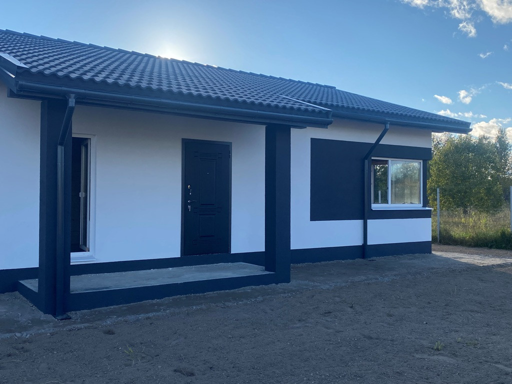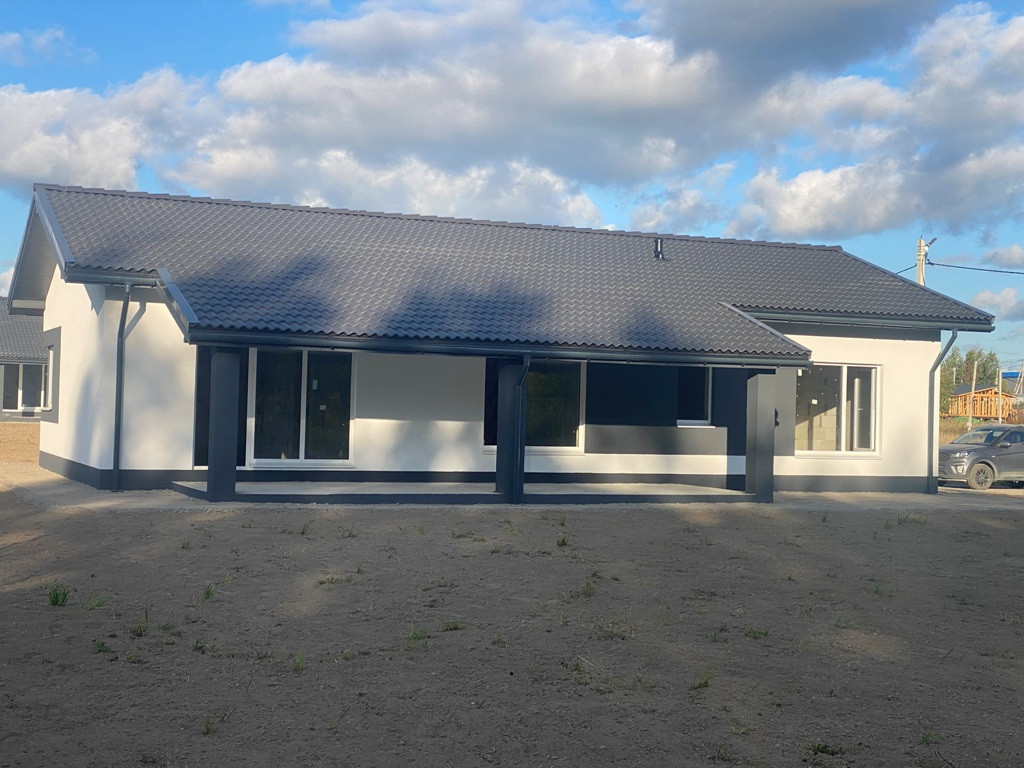 ***Параметры дом: фундамент - плита, включая террасы, материал - газоблок 400, утеплен, тихая крыша, защиты водостоков, одноэтажный размер 8Х15, общая площадь 160 кв.м. включая террасы, три спальни, санузел по усмотрению может быть один или два, кухня -гостинная - столовая с выходом на террасу и котельная - хозблок (см. схемы приложенные к фотографиям).