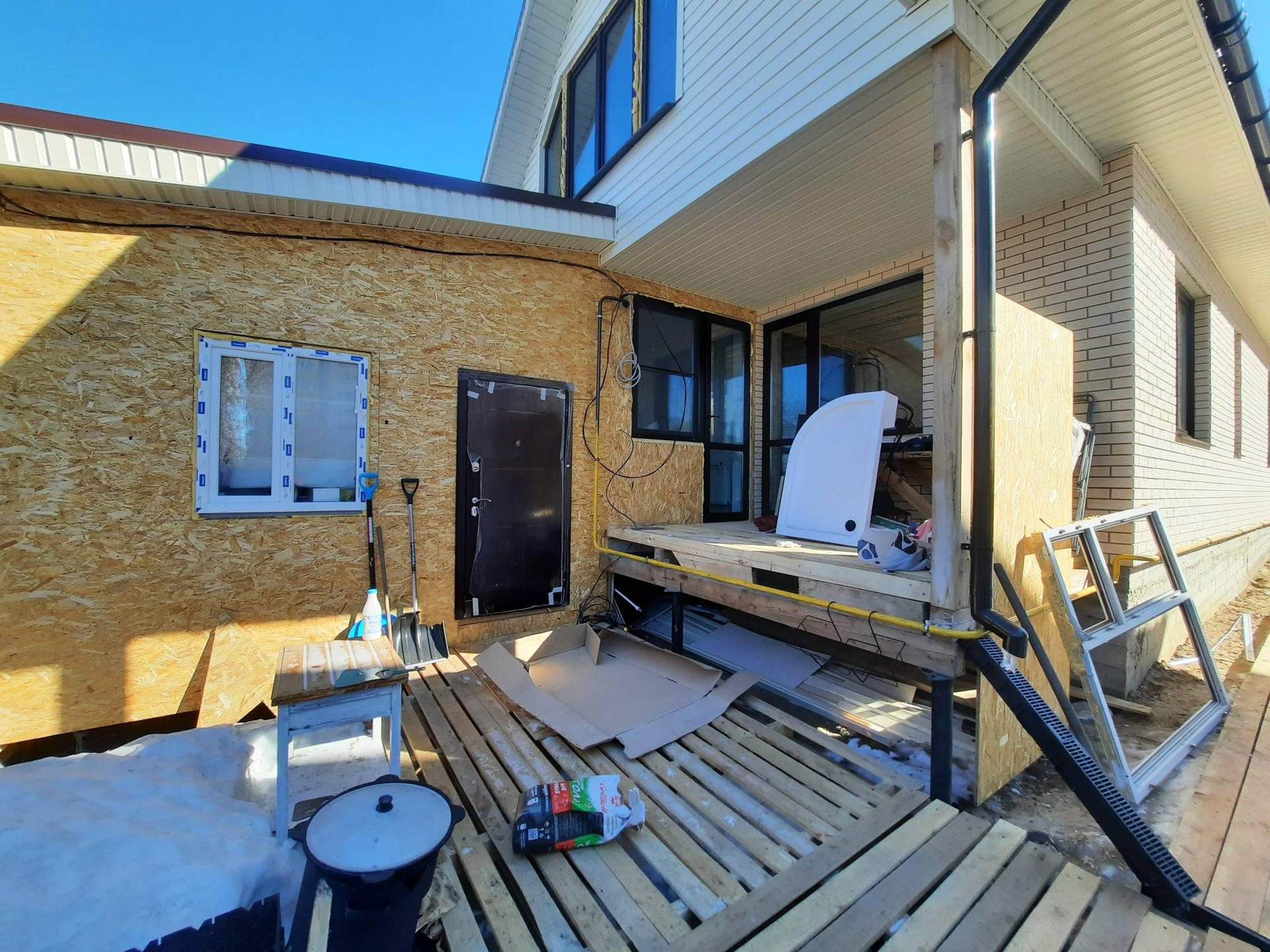 Газ, свет, вода канализация в доме. 3 щитка на электричество, газовый котёл установлен, территория огорожена, откатные ворота, дом отдельностоящий, материал стен газоблоки.
