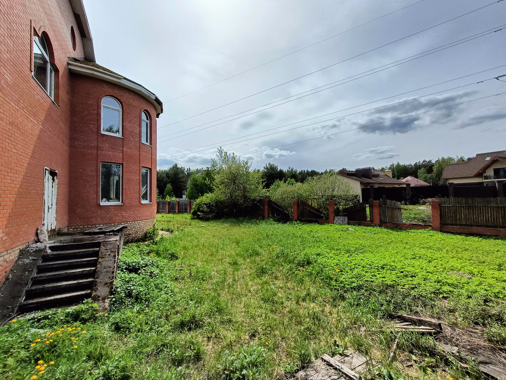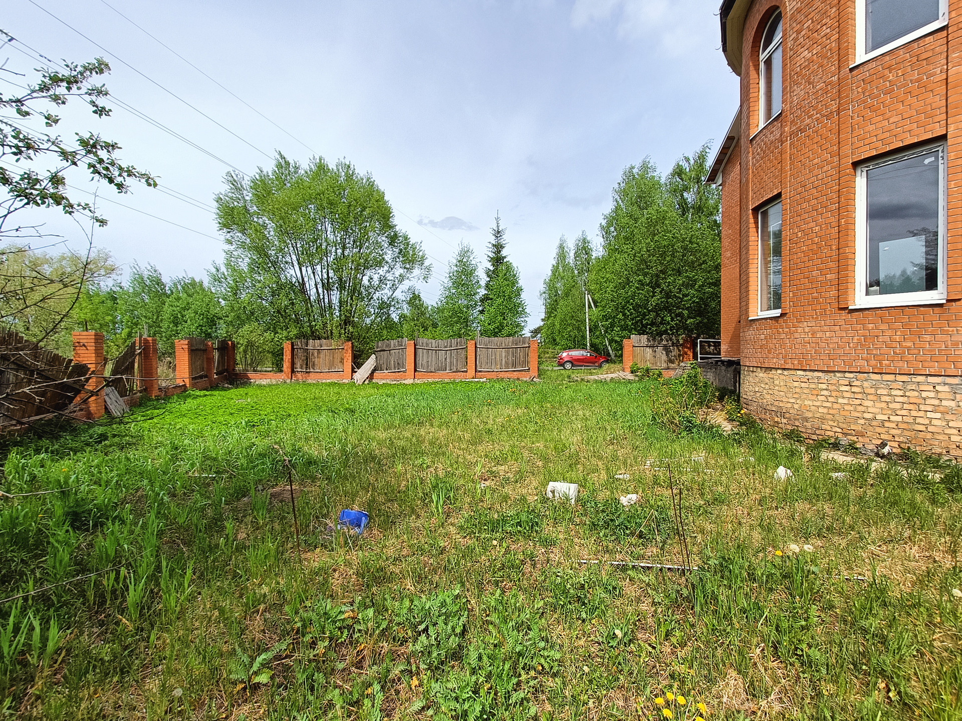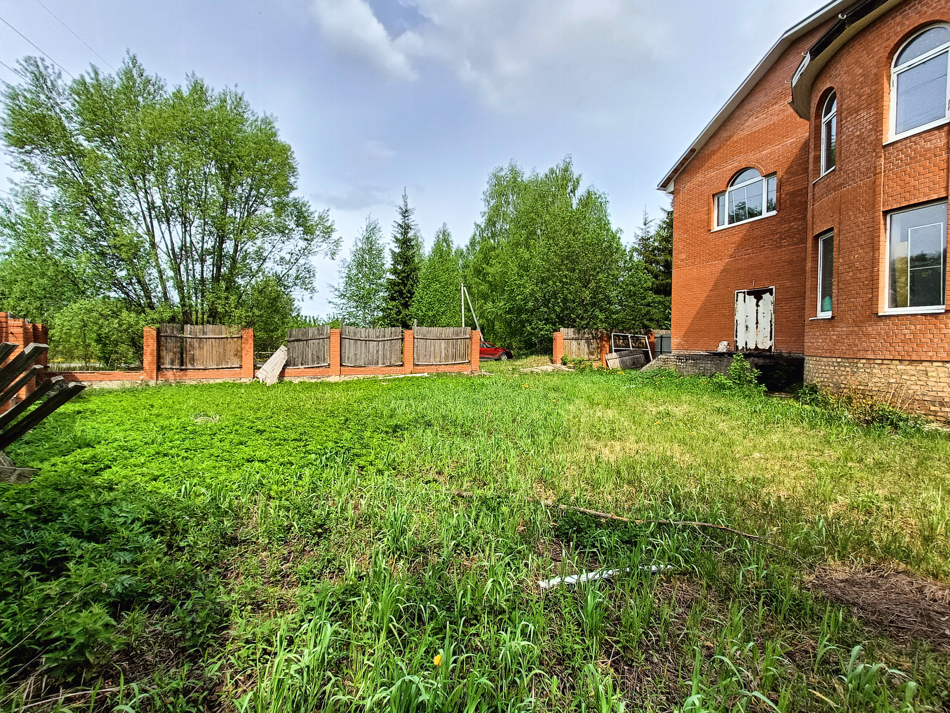 Забор- деревянный / столбы кирпичные.