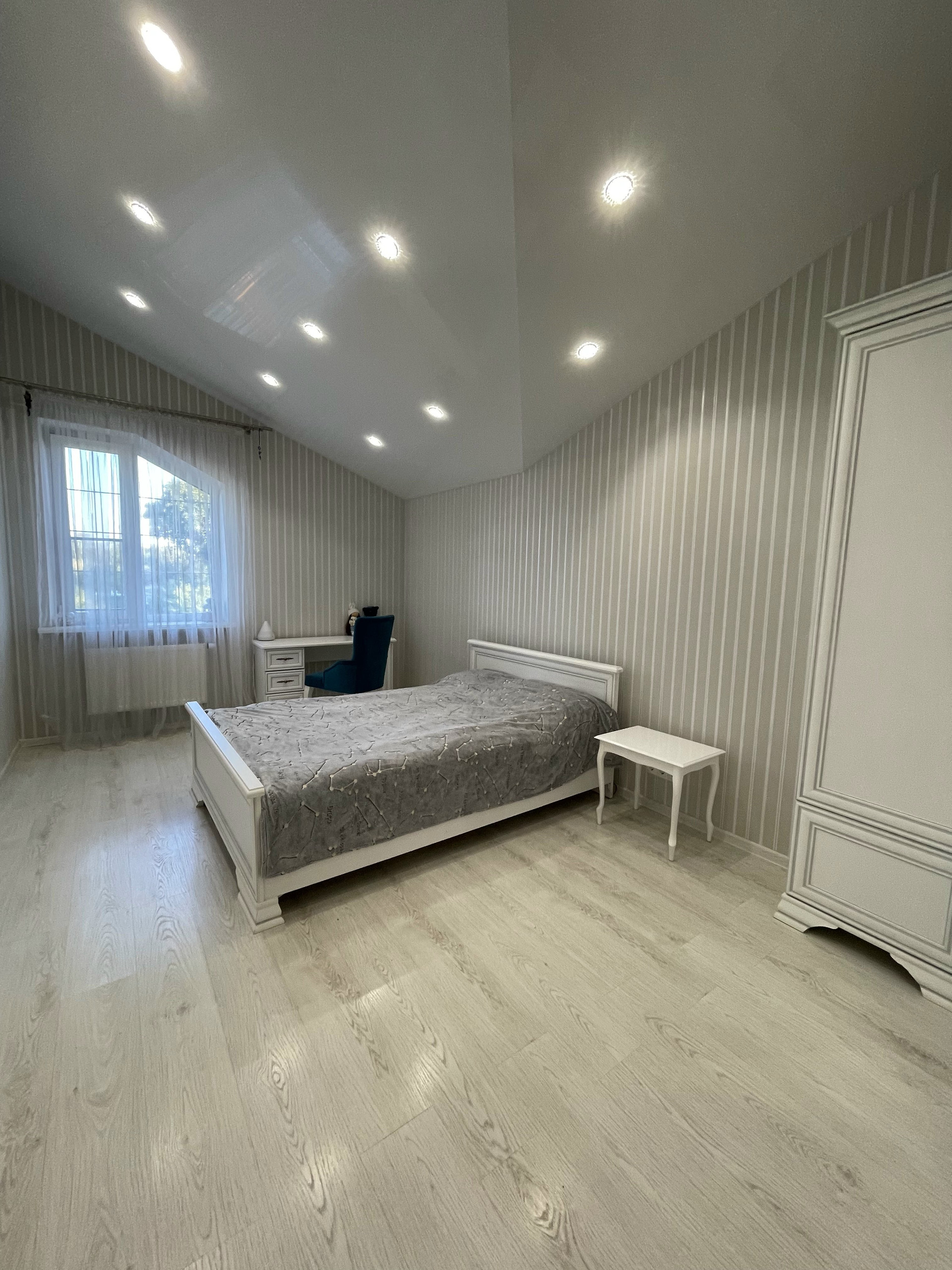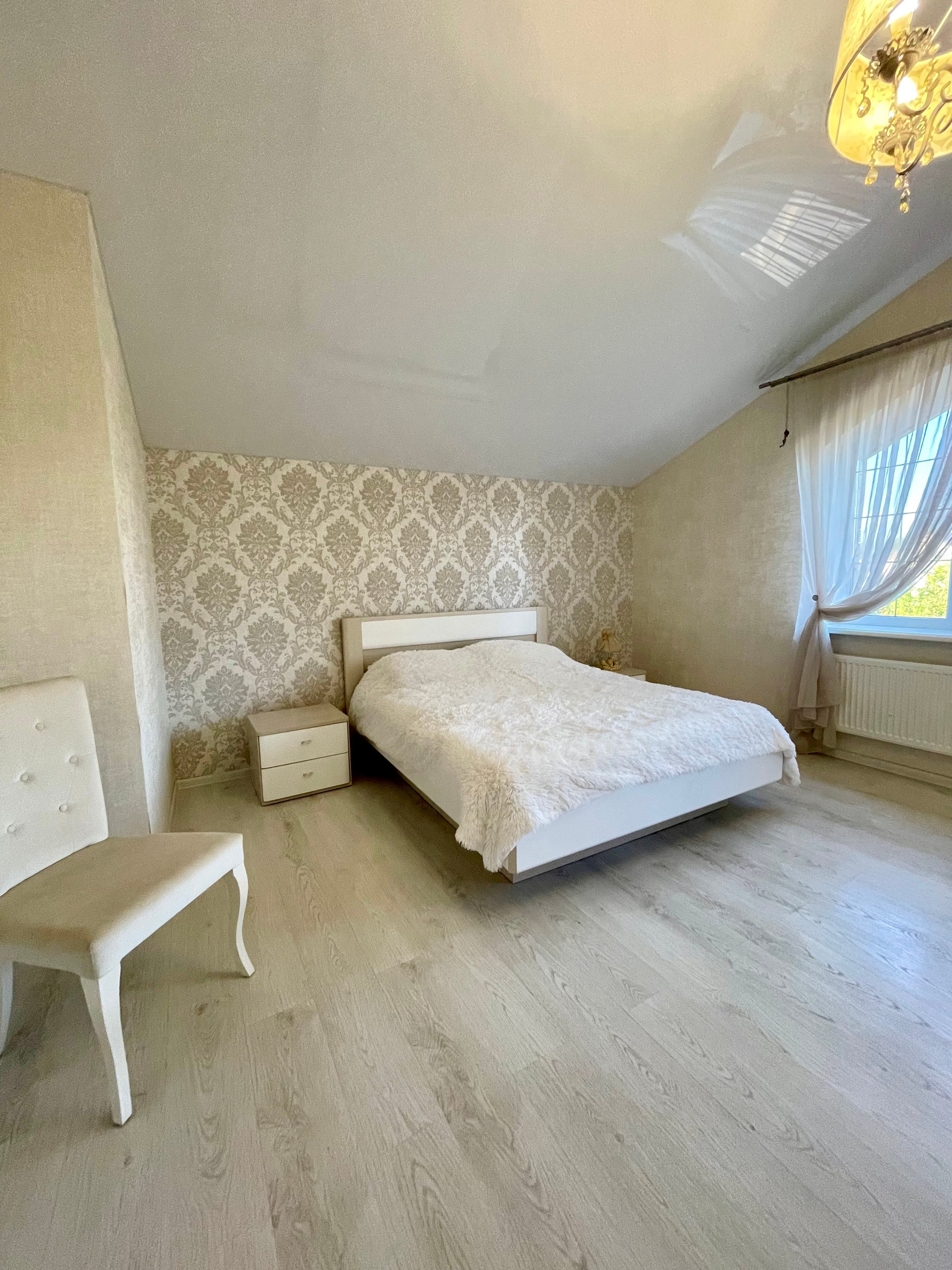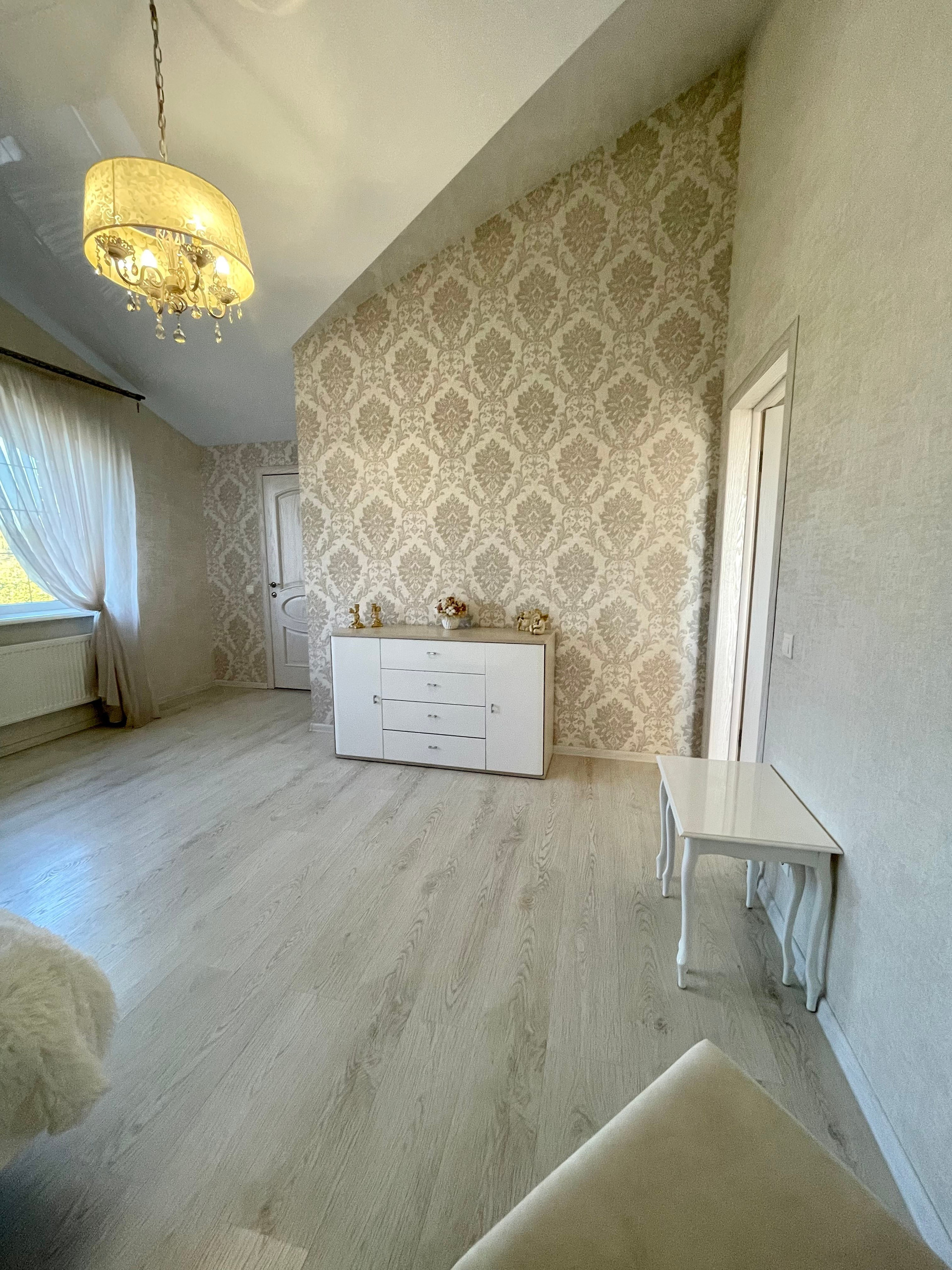 На втором этаже расположены: 1 спальня с собственной ванной комнатой, 2 спальни, совмещенный сан. узел с угловой ванной, двухкомнатная детская комната со своим коридором, состоящая из отдельной спальни и игровой, гардеробной комнатой.