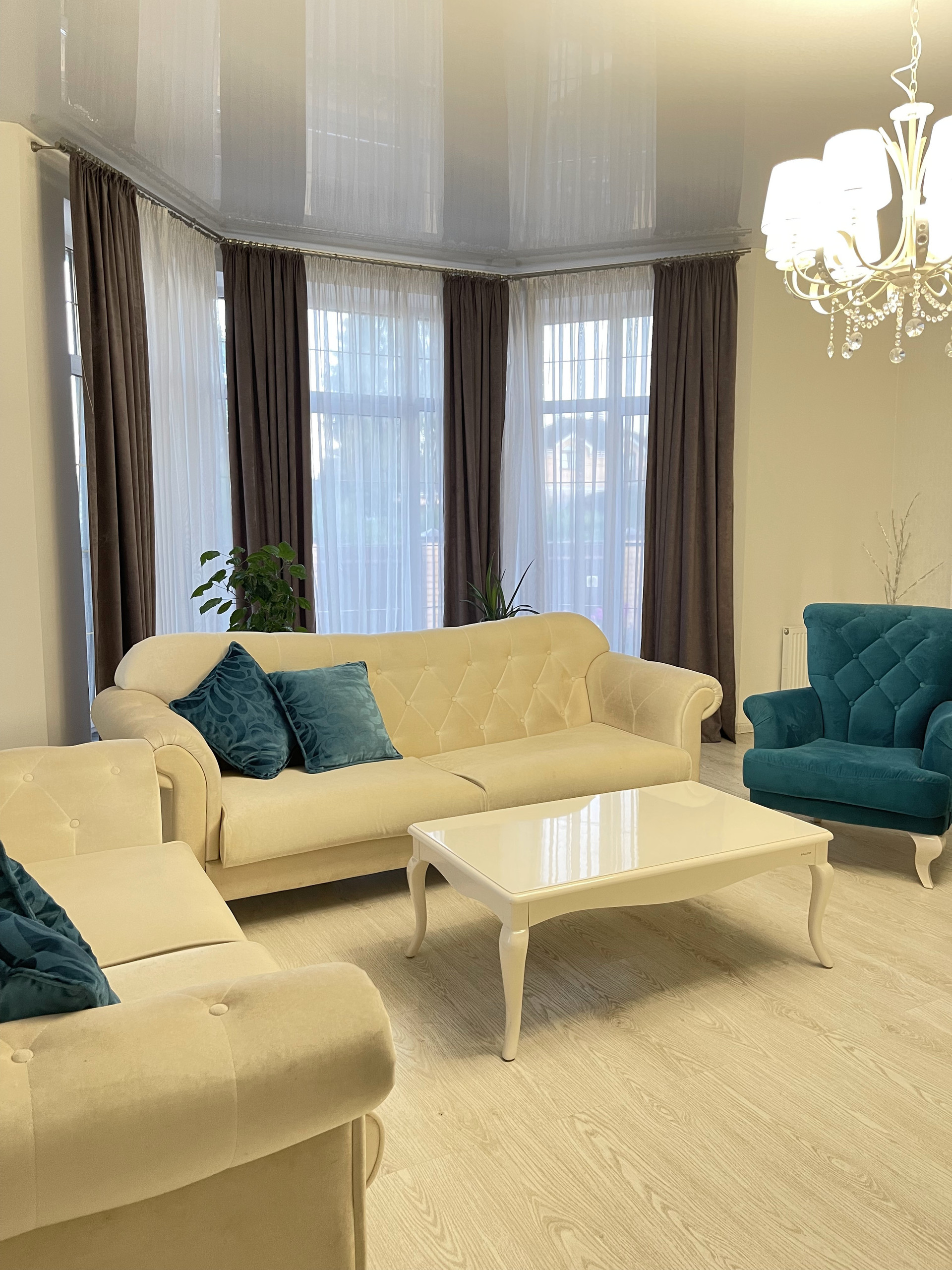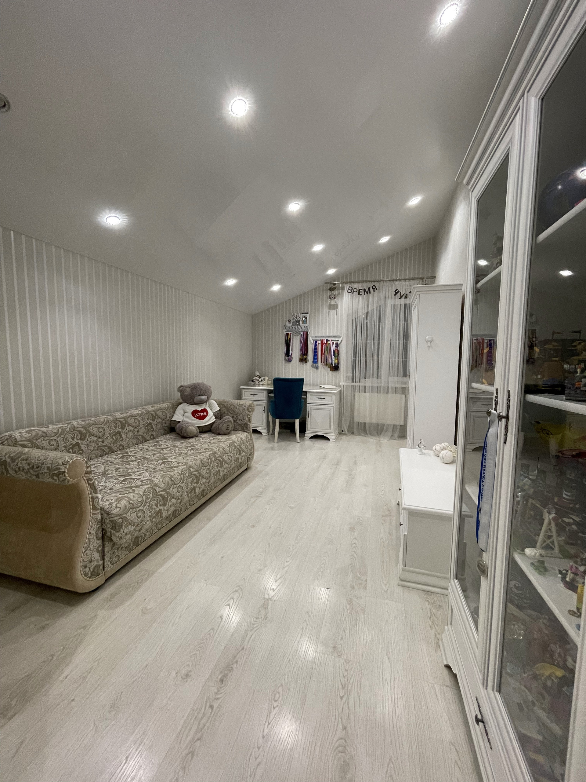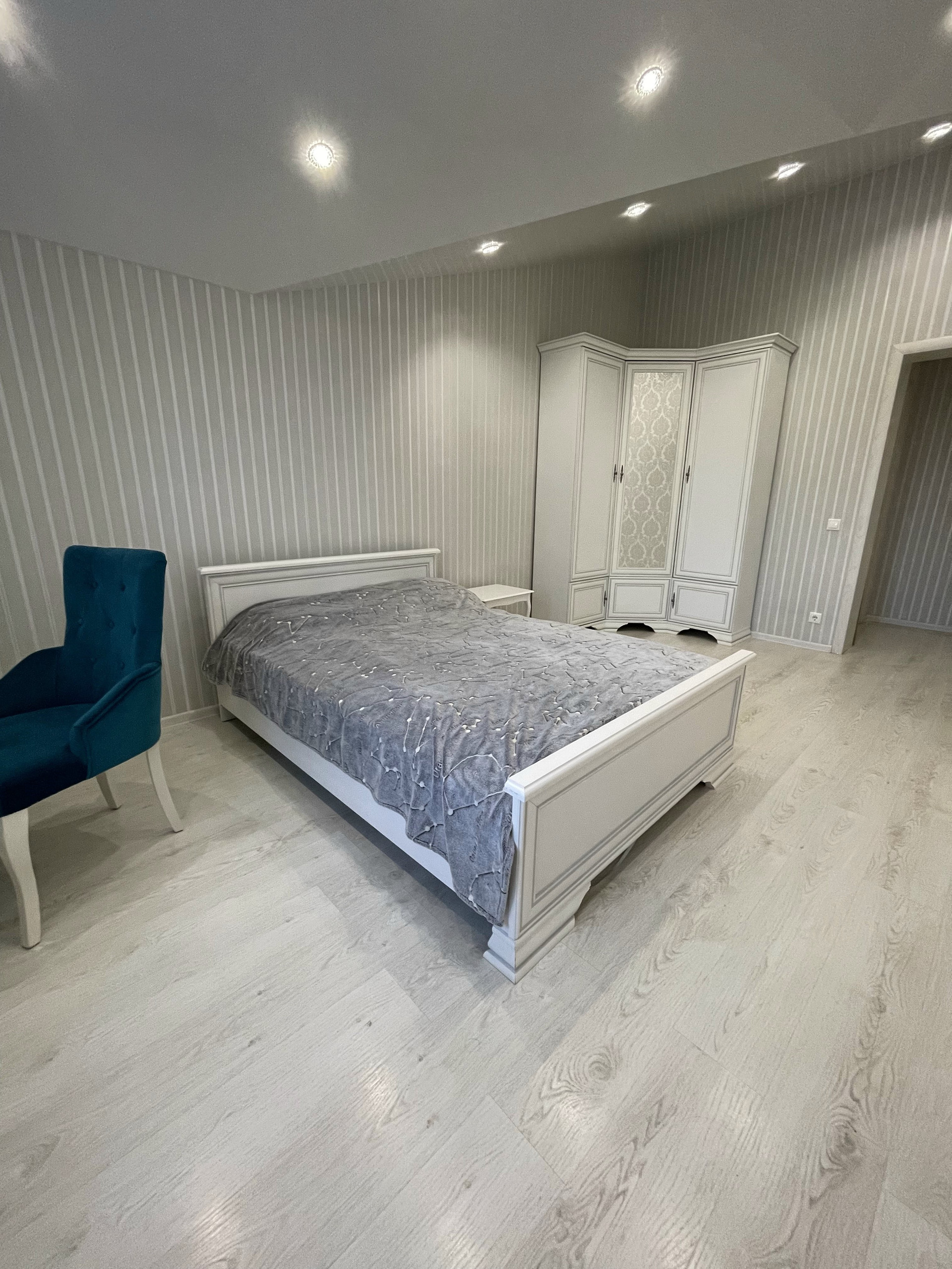На втором этаже расположены: 1 спальня с собственной ванной комнатой, 2 спальни, совмещенный сан. узел с угловой ванной, двухкомнатная детская комната со своим коридором, состоящая из отдельной спальни и игровой, гардеробной комнатой.
