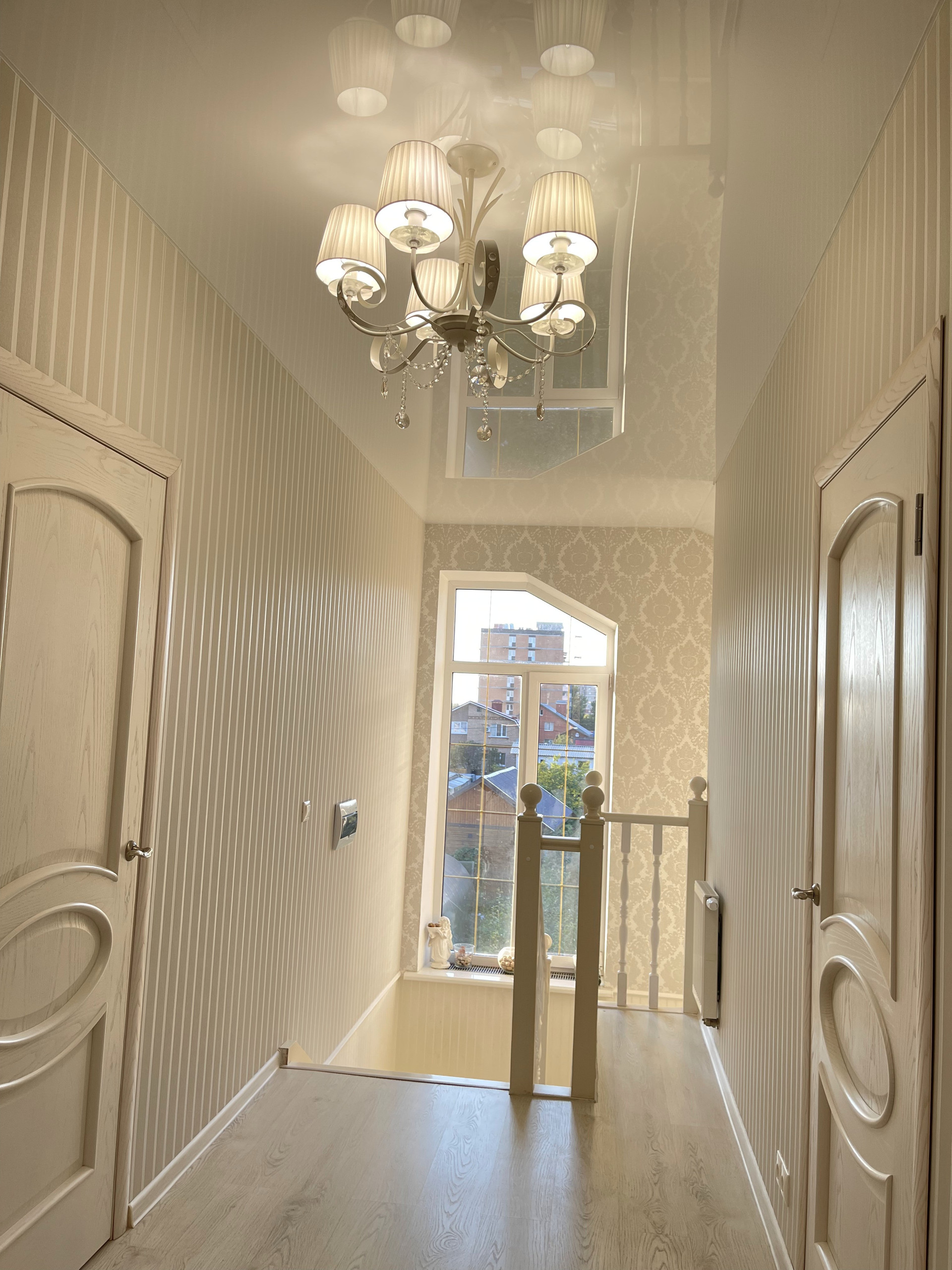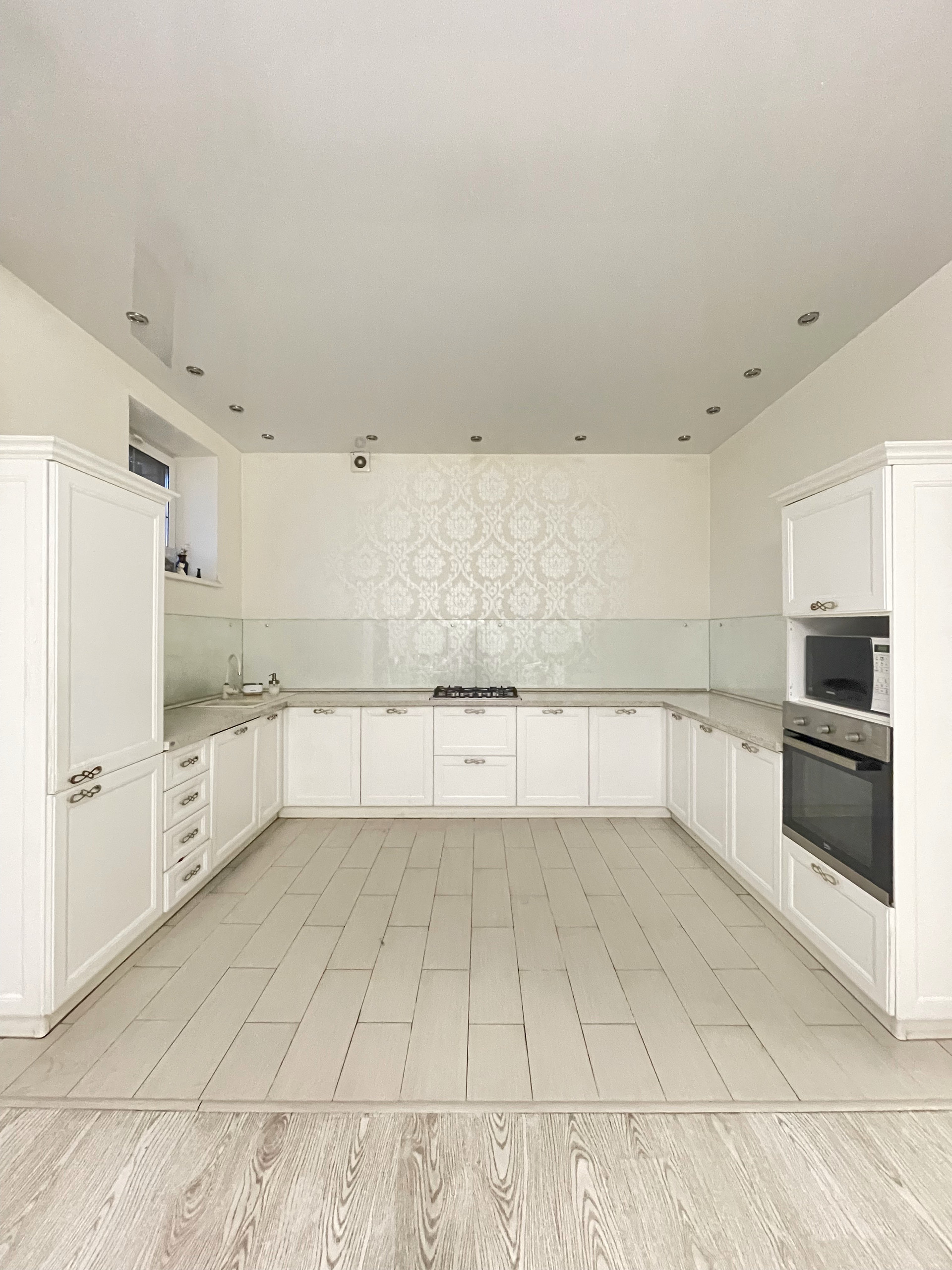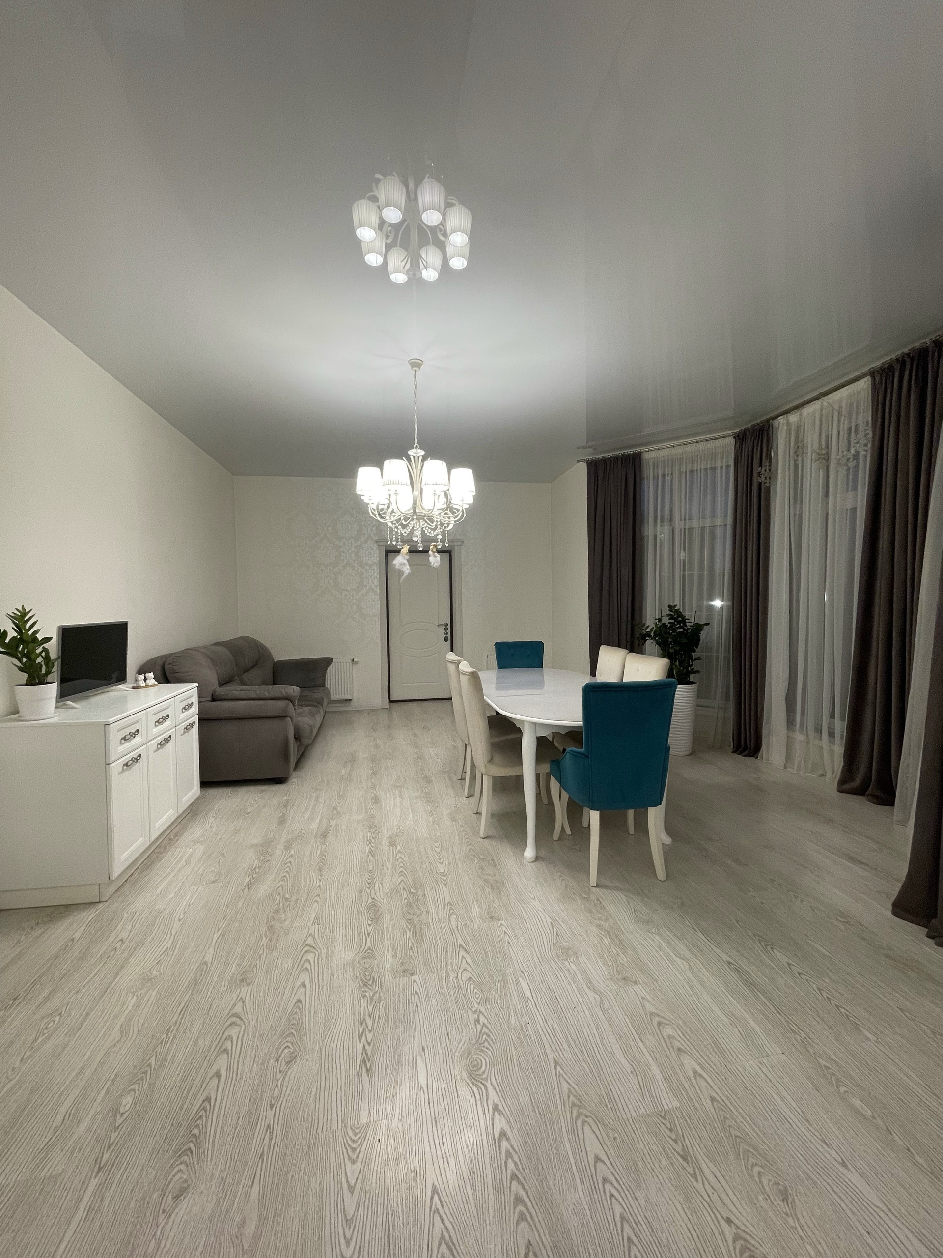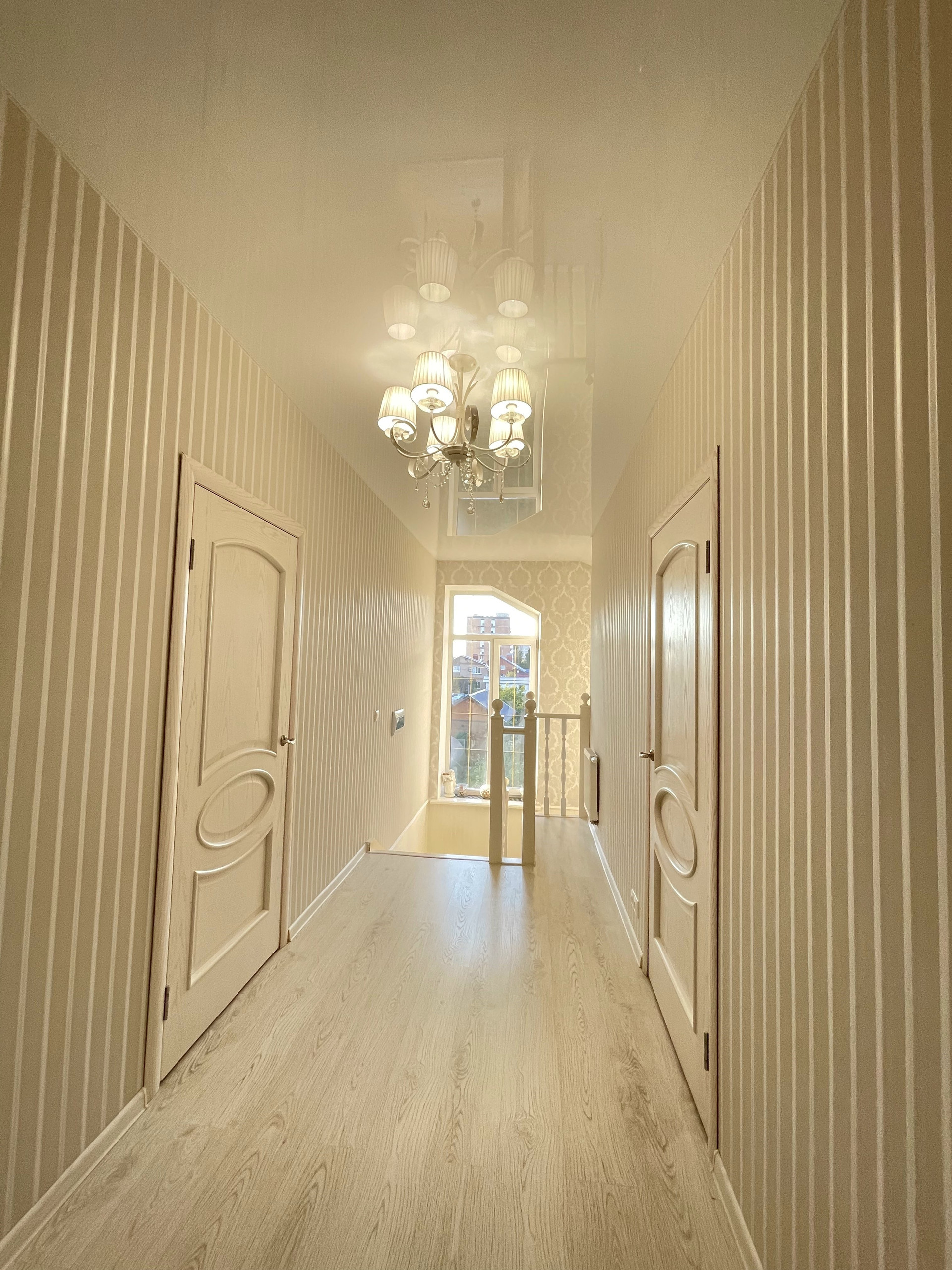 На первом этаже расположены: 2 коридора с вместительными встроенными шкафами-купе, совмещенным сан. узлом с душевой частью, просторной гостиной комнатой, гостевой спальней и уютной кухней с обеденным двухметровым столом и диваном.
