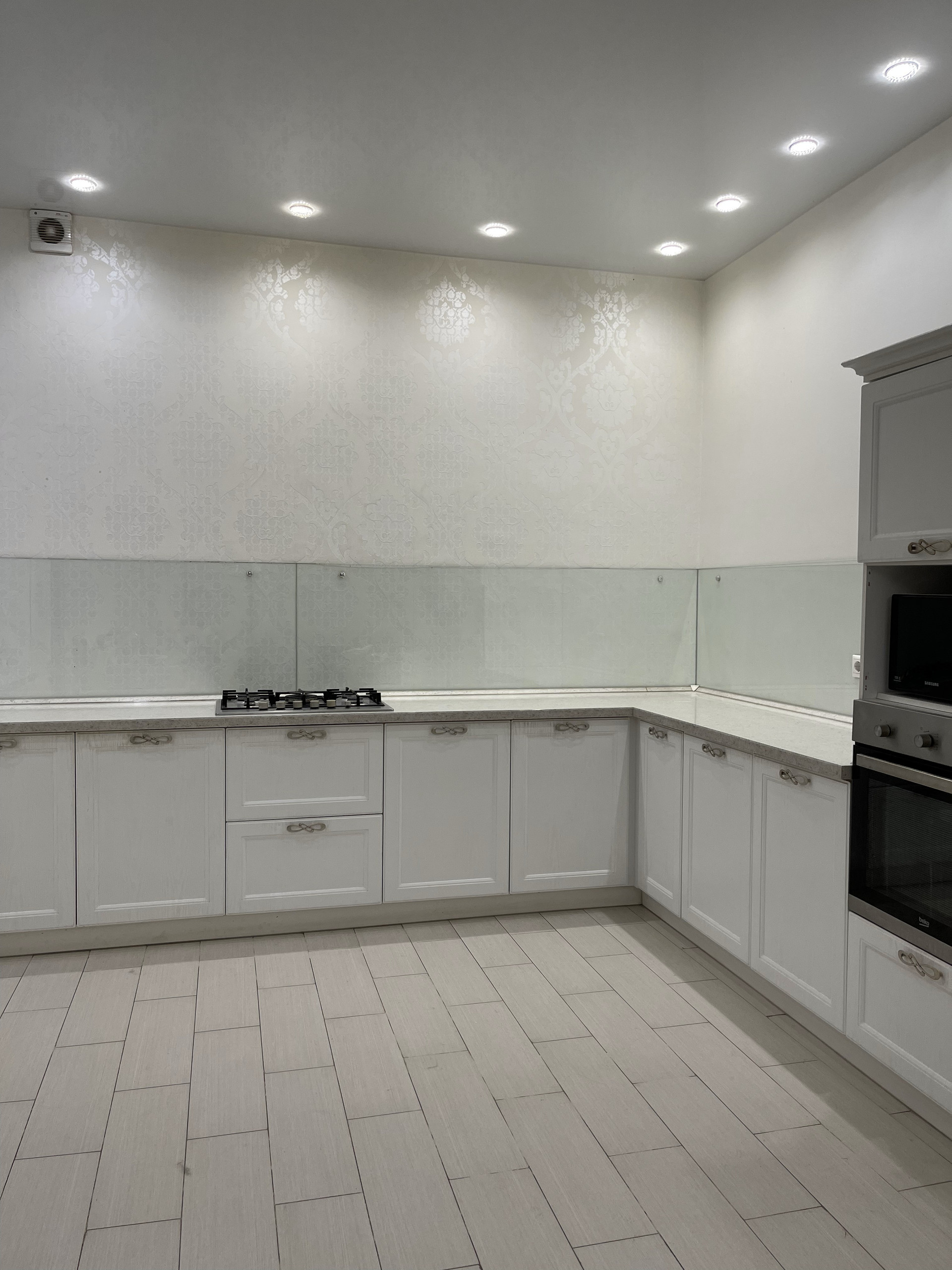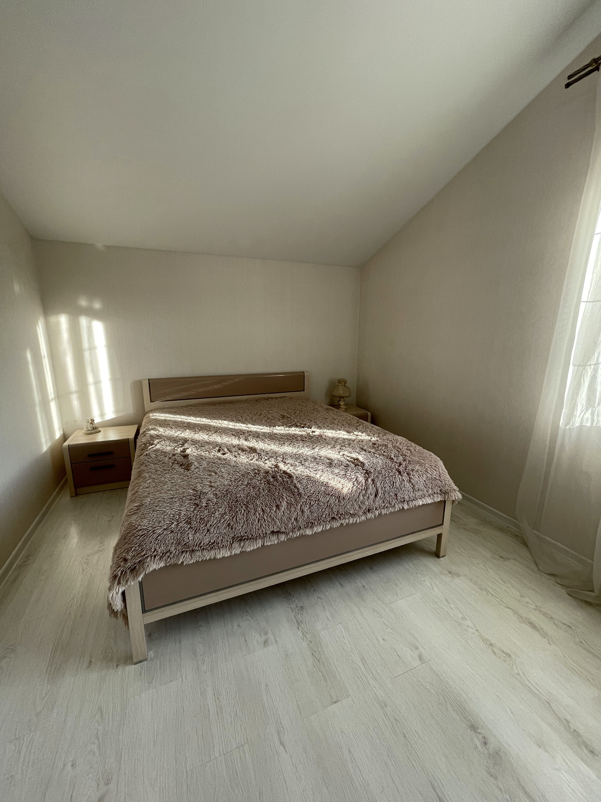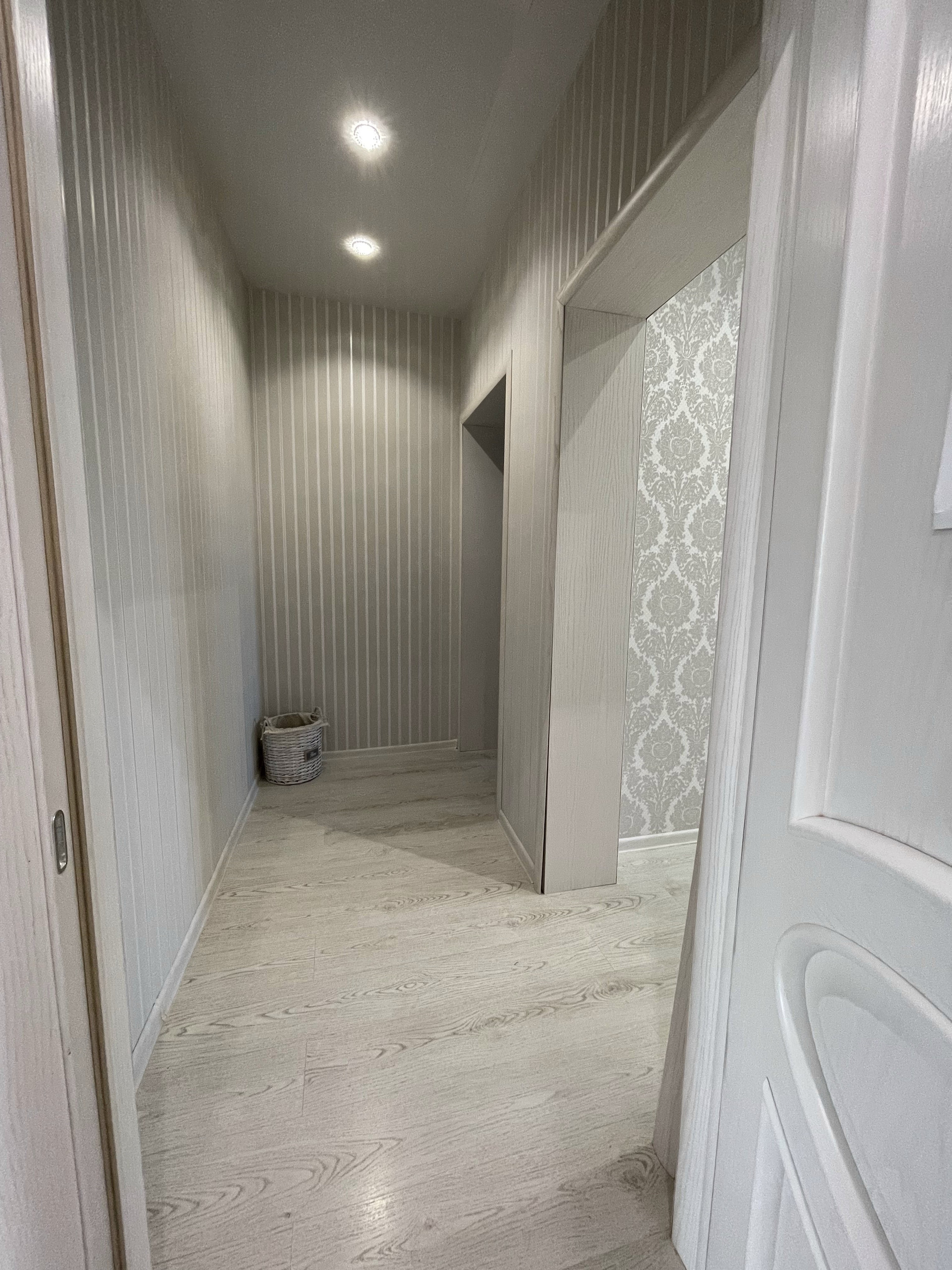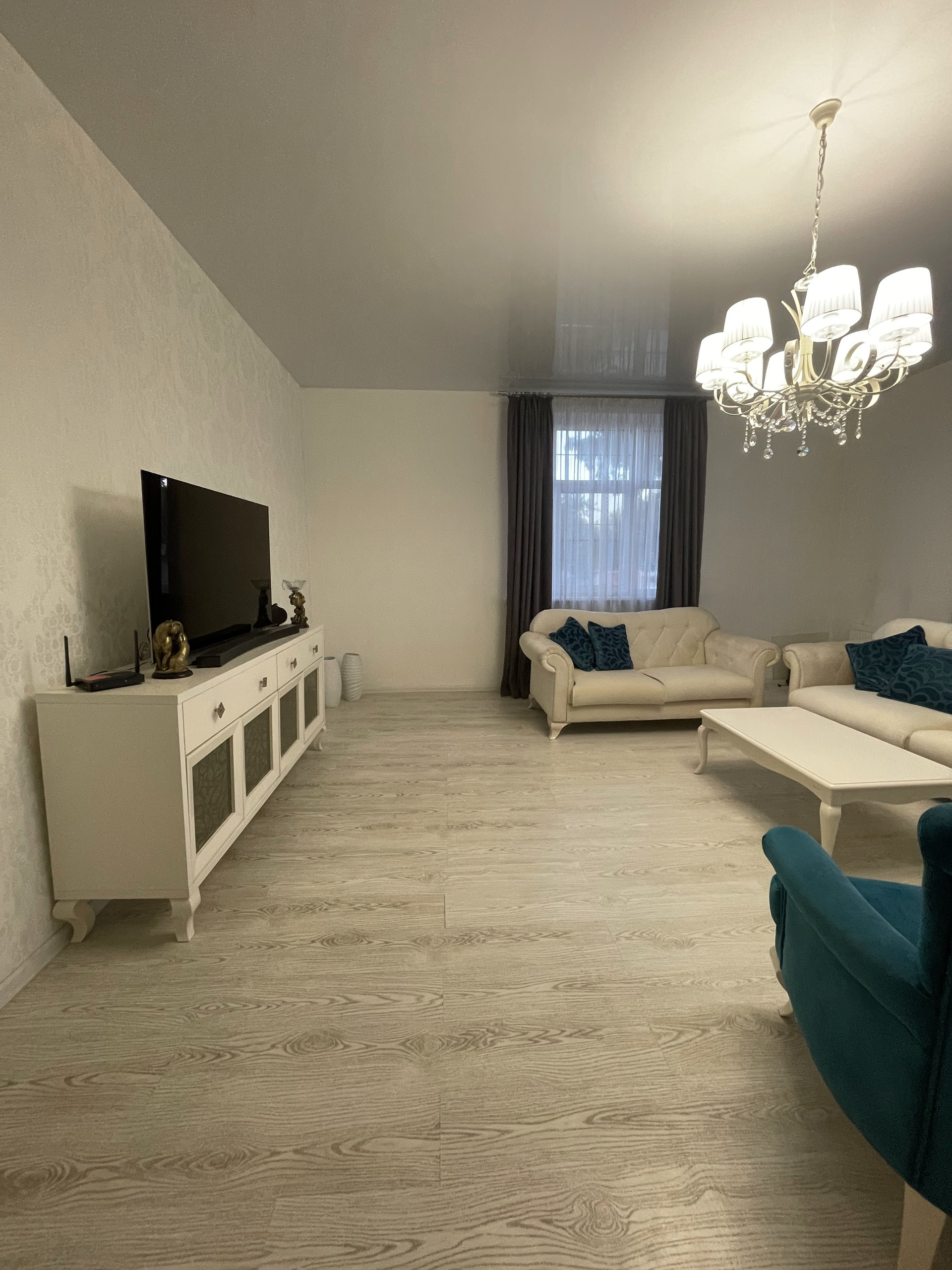 На первом этаже расположены: 2 коридора с вместительными встроенными шкафами-купе, совмещенным сан. узлом с душевой частью, просторной гостиной комнатой, гостевой спальней и уютной кухней с обеденным двухметровым столом и диваном.
