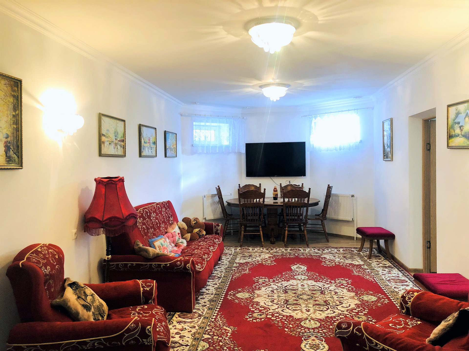 Дом строили для себя, очень качественно и капитально, толщина стен 60 см, полная чистовая отделка, меблированный, окна ПВХ. Удобная планировка: 3 с/у (2 ванные комнаты), кухня-столовая, гостиная, 6 спален, подсобные помещения, котельная, 2 балкона, гараж.