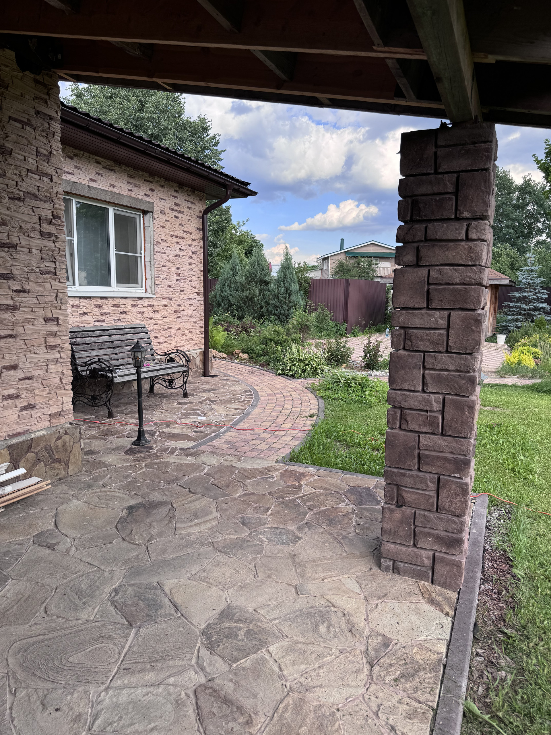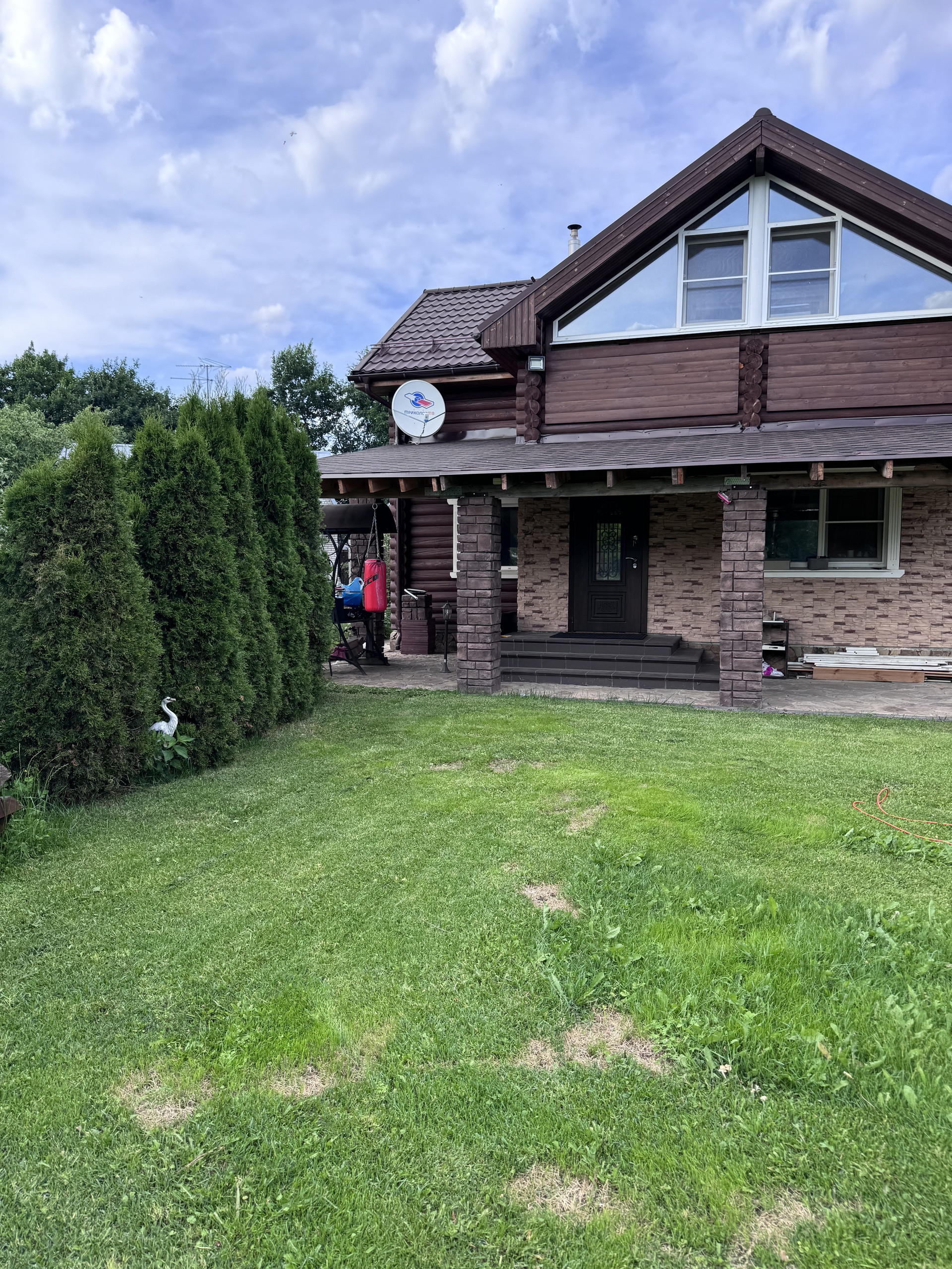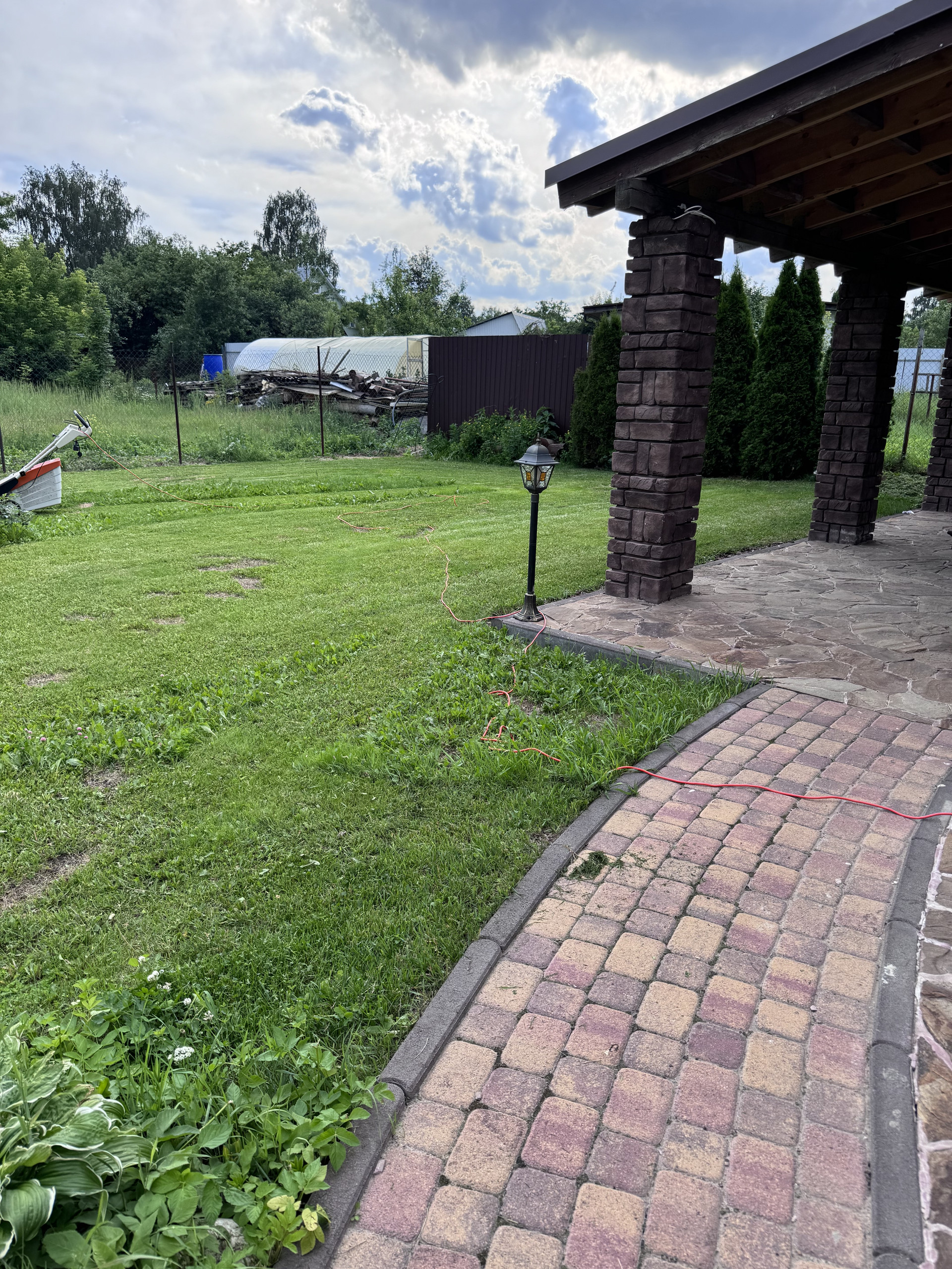 Участок полностью укомплектован, дорожки из камня, плитка, беседка большая, качели , мангальная зона , хвойные растения, газон