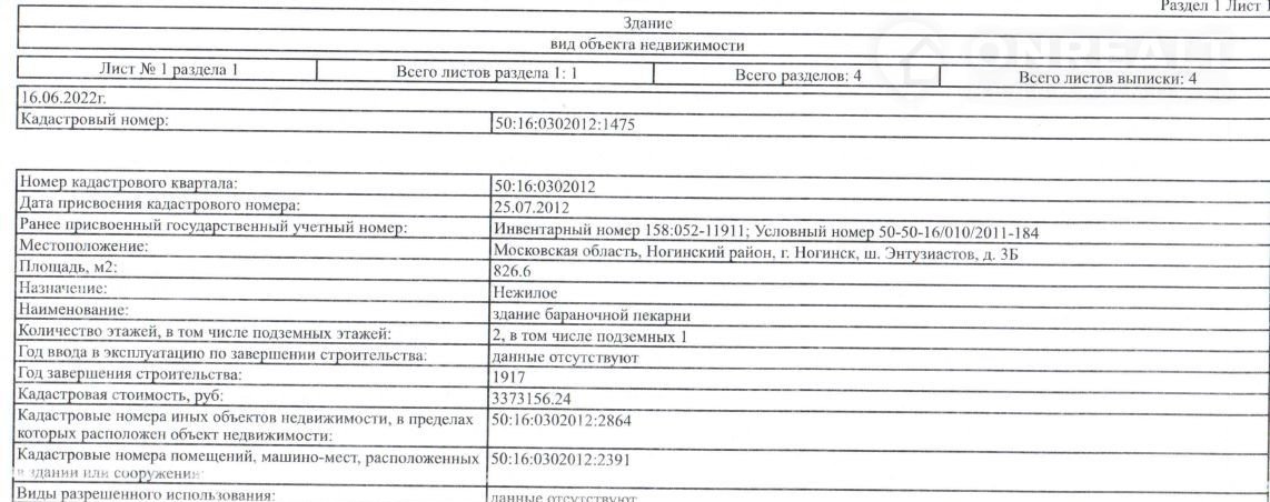 ✅️ Нежилое здание, кад. 50:16:0302012:1475; пл. 826.6 кв. м. Бывший цех бараночных изделий хлебо-булочного комбината. Все коммуникации заведены.