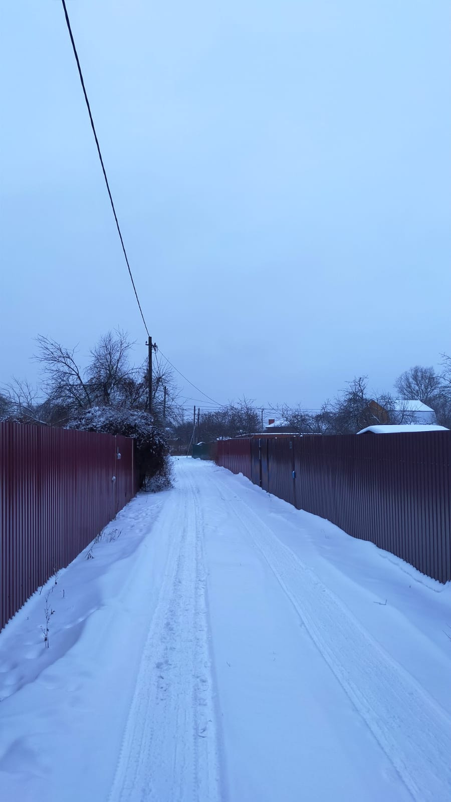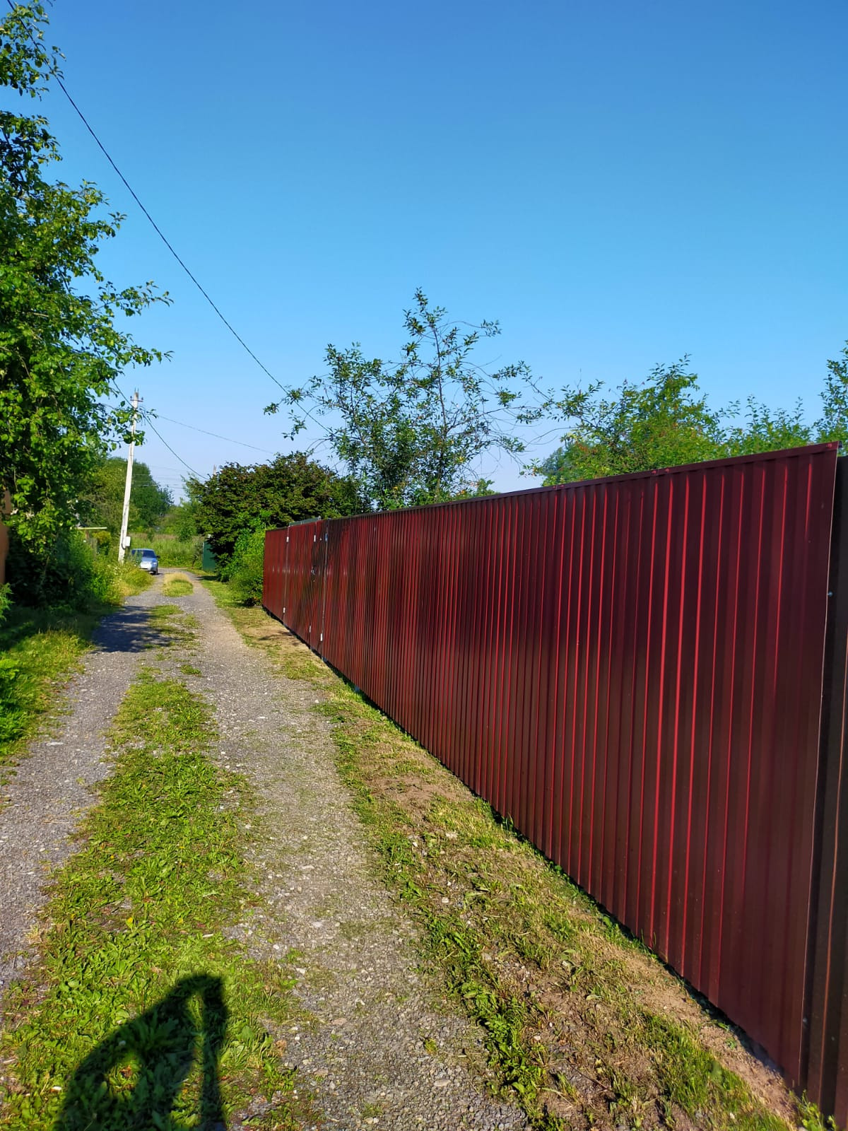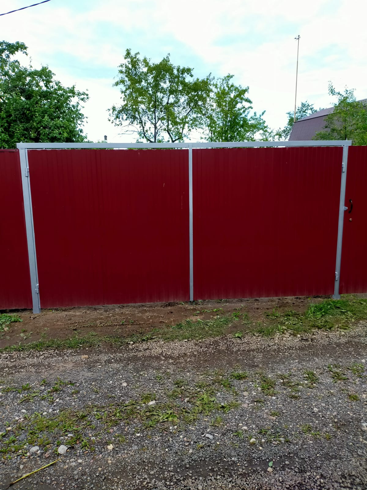 С трех сторон от соседей огорожен сеткой рабица, со стороны дороги забор из профлиста.