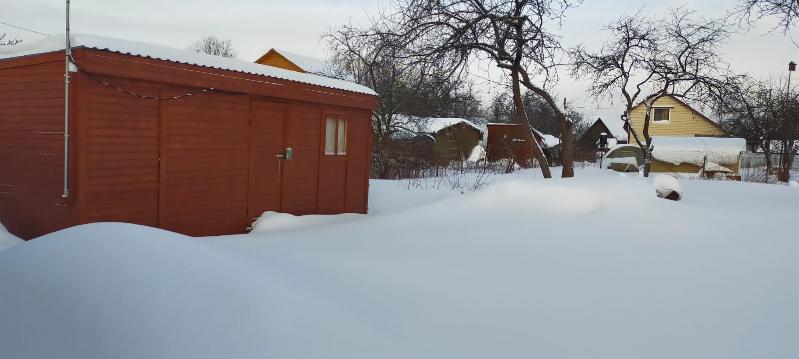 На участке есть утепленный (вагончик 2,3х6), теплица усиленная (3х6), скважина (вода питьевая)