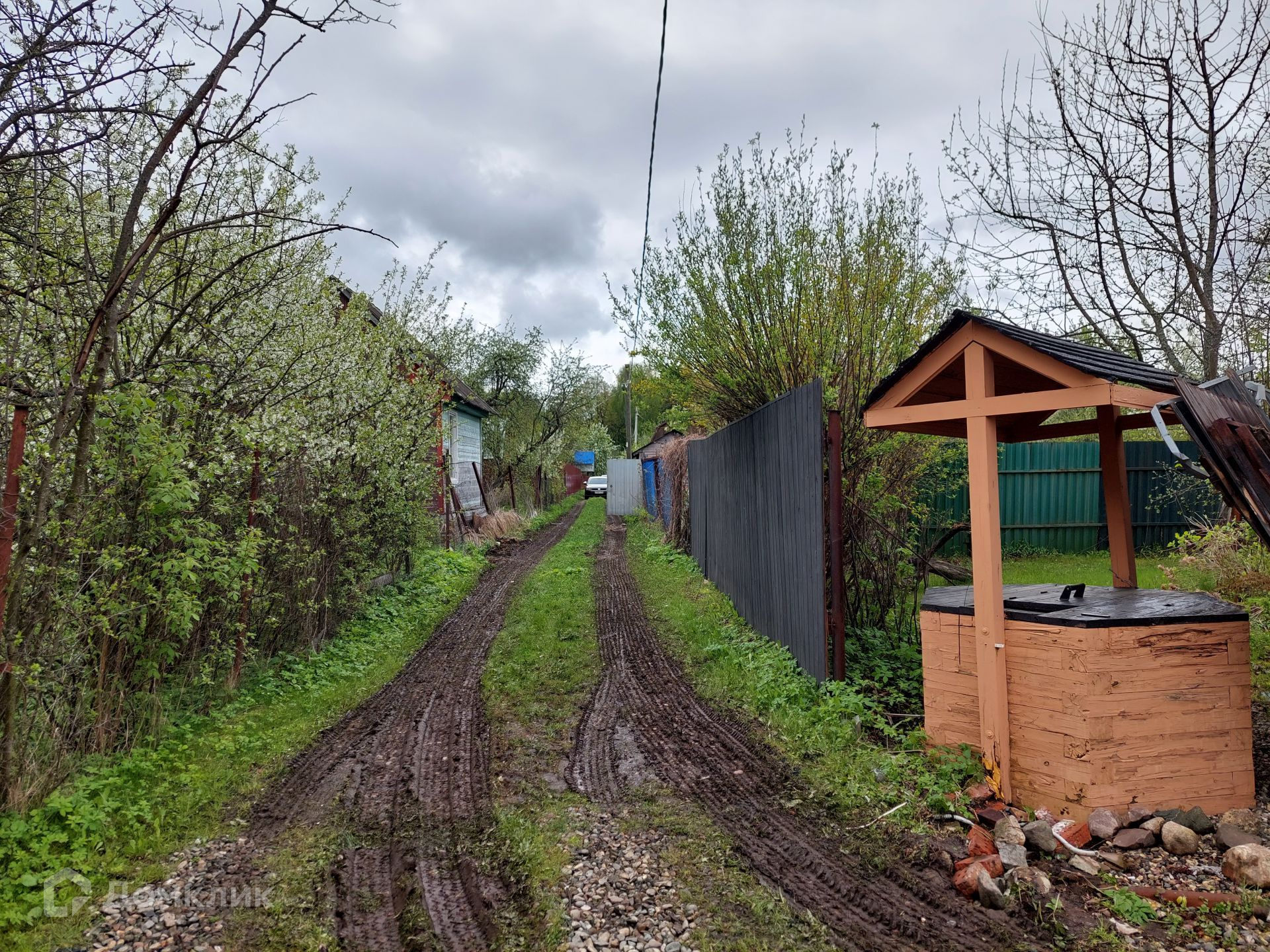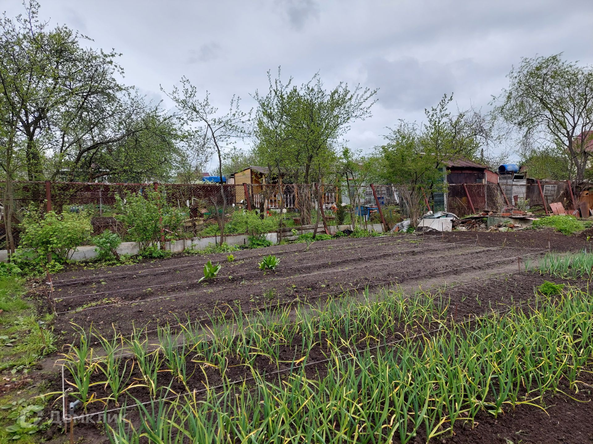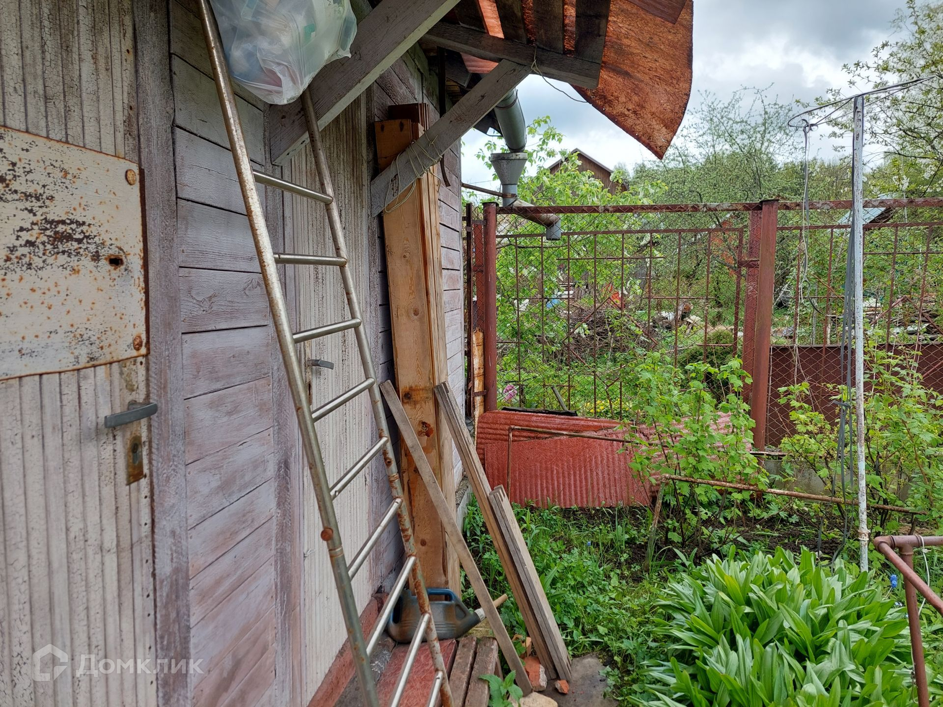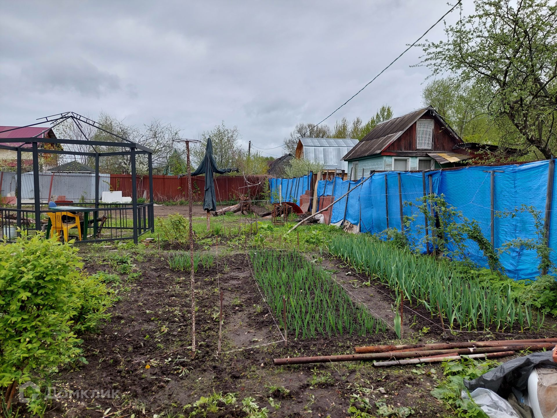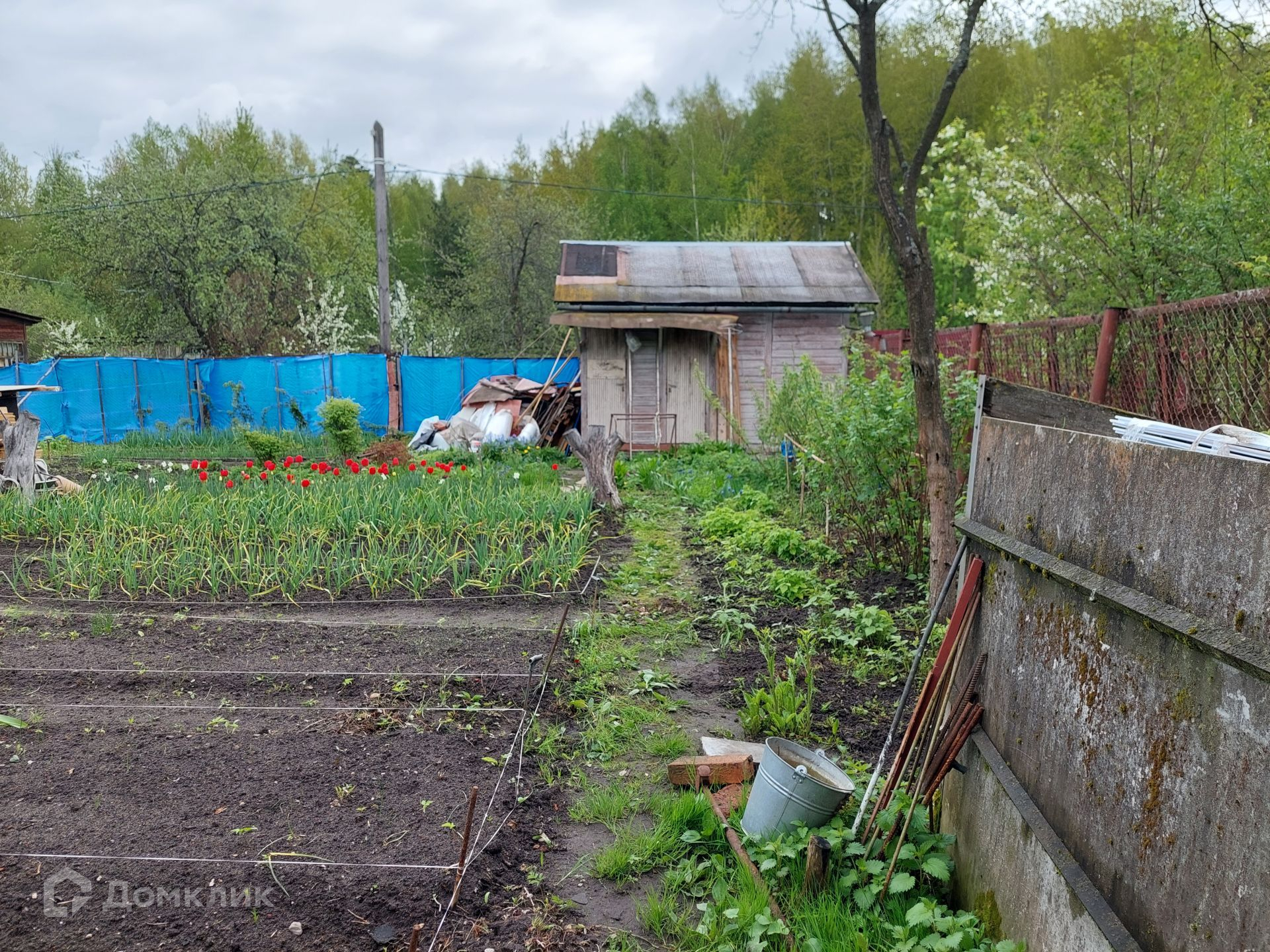 На территории уже установлен туалет, небольшой домик 4х3 м, в котором можно отдохнуть, укрыться от дождя. Со всех сторон участок огорожен рабицей.