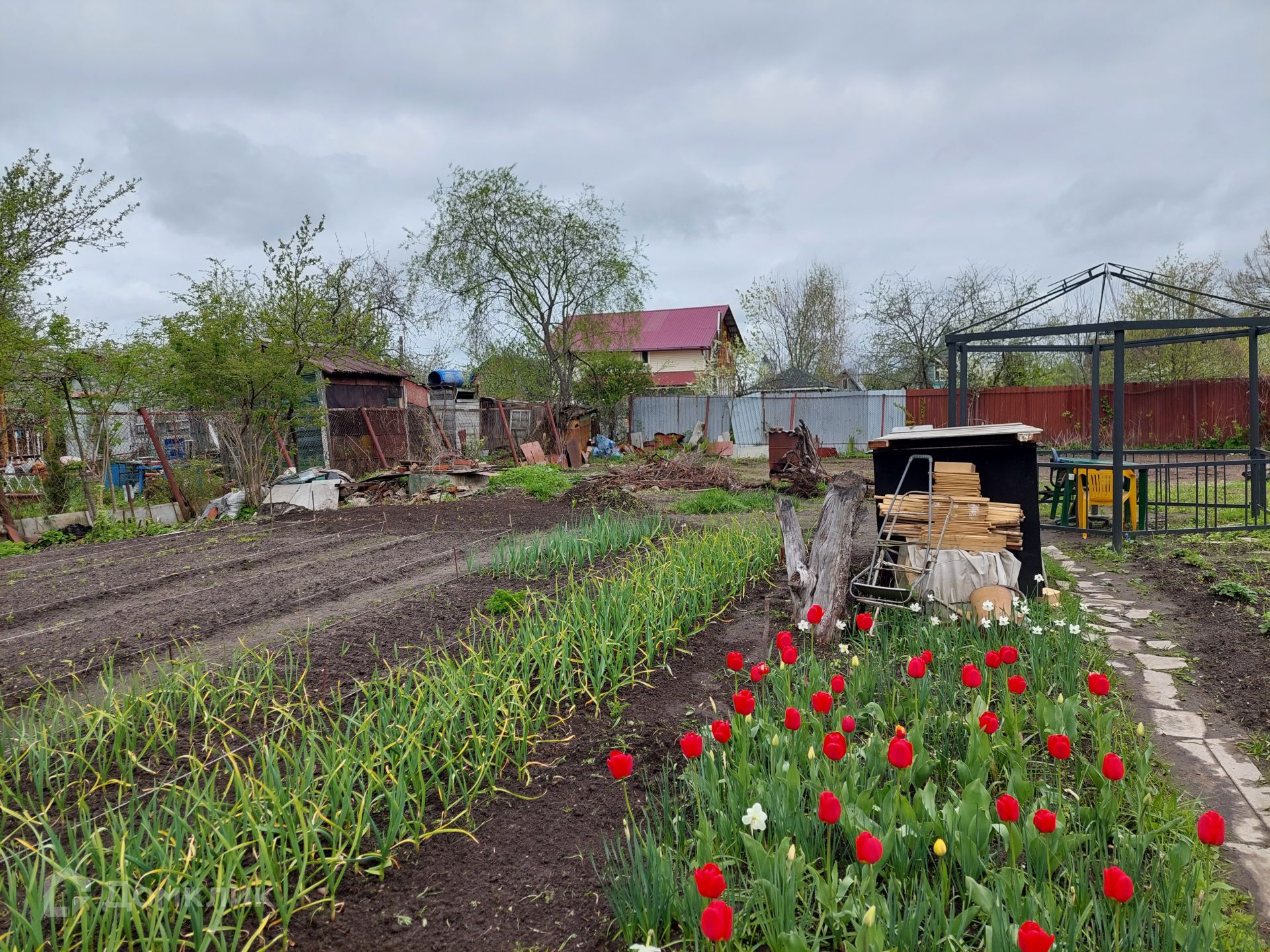 Обустроены грядки, в мае чудесно цветут тюльпаны, лето радует урожаем смородины, сливы и вишни.