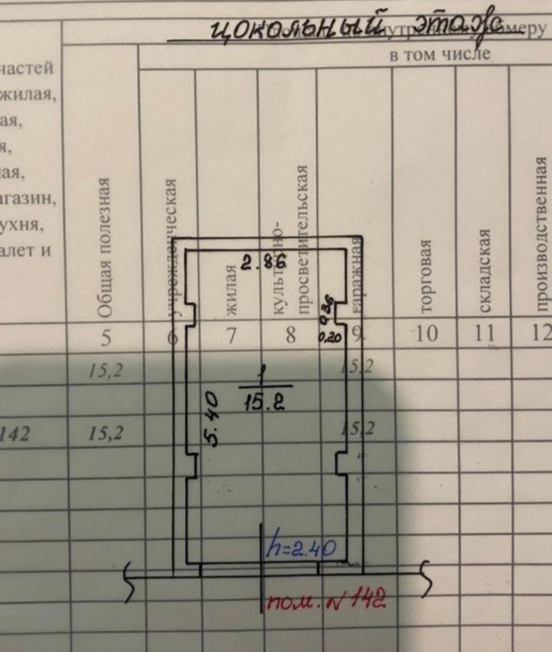 Общая площадь 15.2 м2