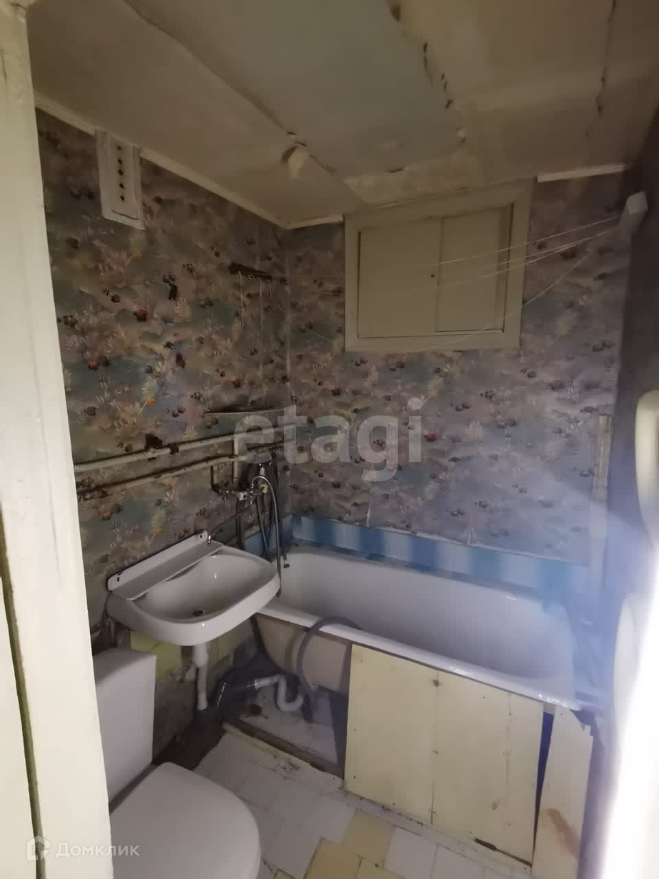 Санузел совмещен без ремонта. Требуется замена сантехники.