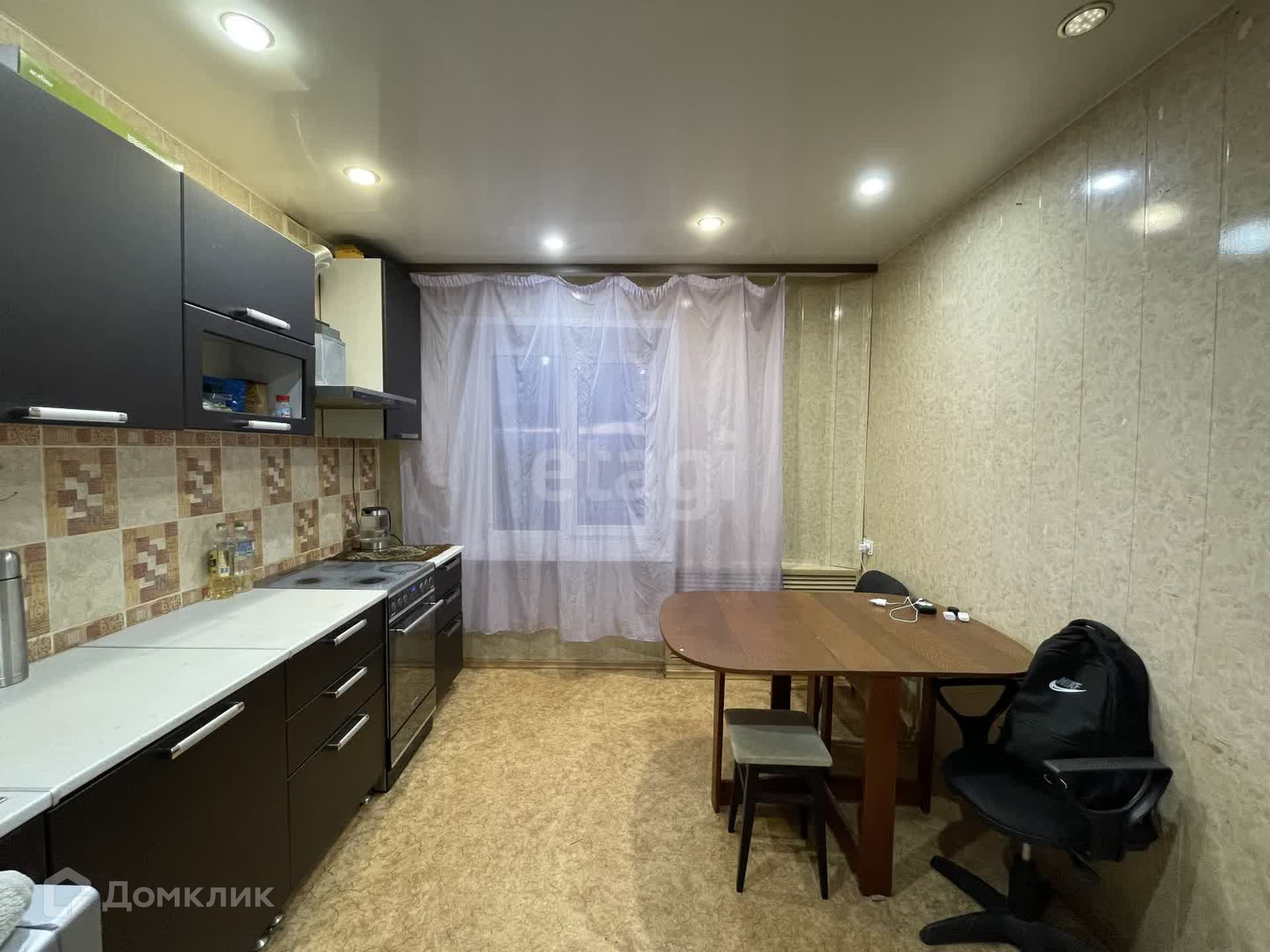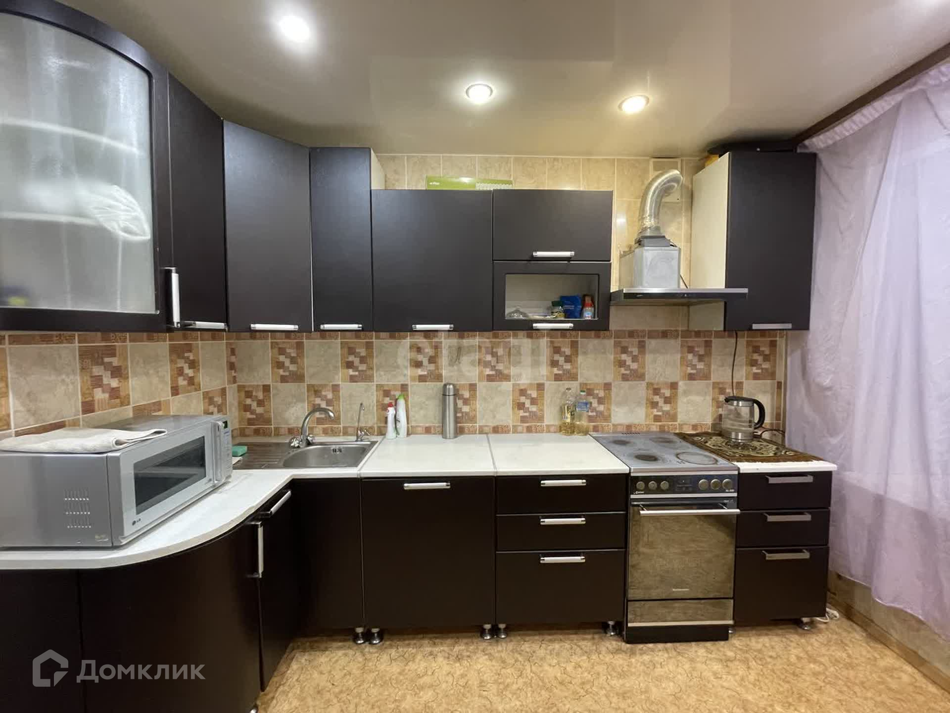 Квартира в жилом состоянии, с частичным косметическим ремонтом. Сантехника и электрика в рабочем состоянии. В зале и кухне установлен натяжной потолок с точечным освещением. Санузел совместный, облицован ПВХ панелями, на потолке так же ПВХ панели с точечным освещением. Пластиковые окна во всей квартире. Отопление медное.
