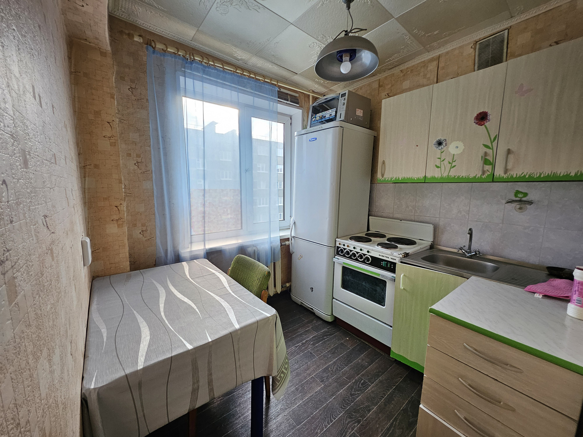 Квартира в жилом состоянии, имеется балкон в комнате, туалет с ванной раздельные, в ванной на стенах и полу выложен кафель. Мебель и техника при продаже в квартире полностью остается.
