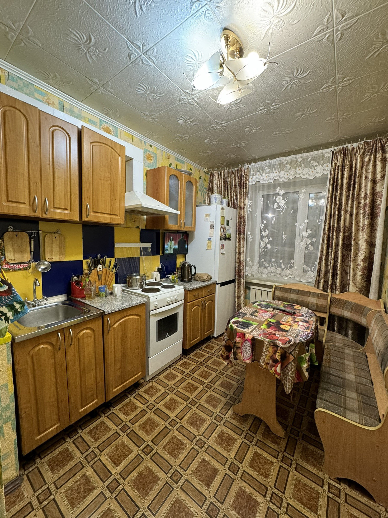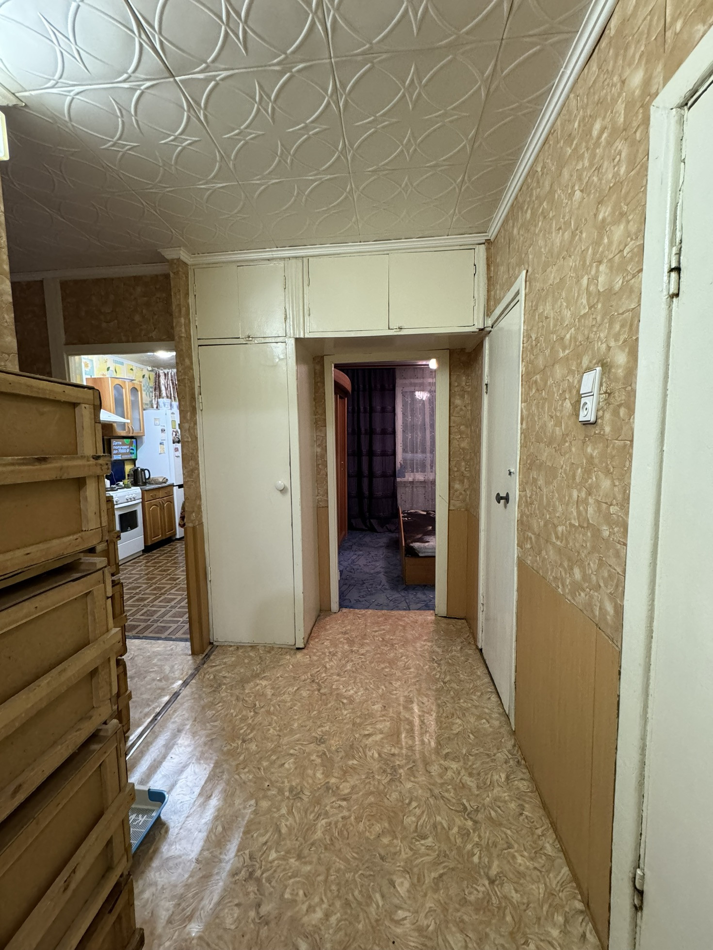 В квартире косметический ремонт,окна ПВХ (в зале окна дерево и балкон),раздельные комнаты,большой тамбур на 1 квартиру дополнительное пространство коридор,остается вся мебель и техника.Квартира уютная и очень теплая не смотря на 1-ый этаж.