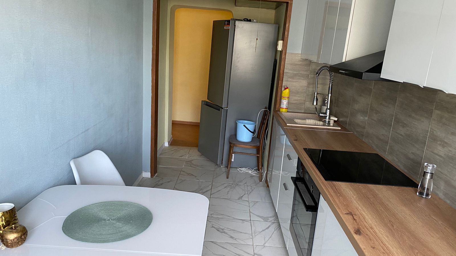 На кухне выполнен Ремонт , год назад , вся техника новая , стиральная машина новая ,