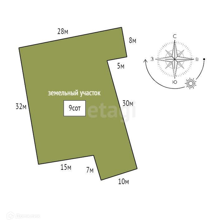 Площадь участка 9 сот.