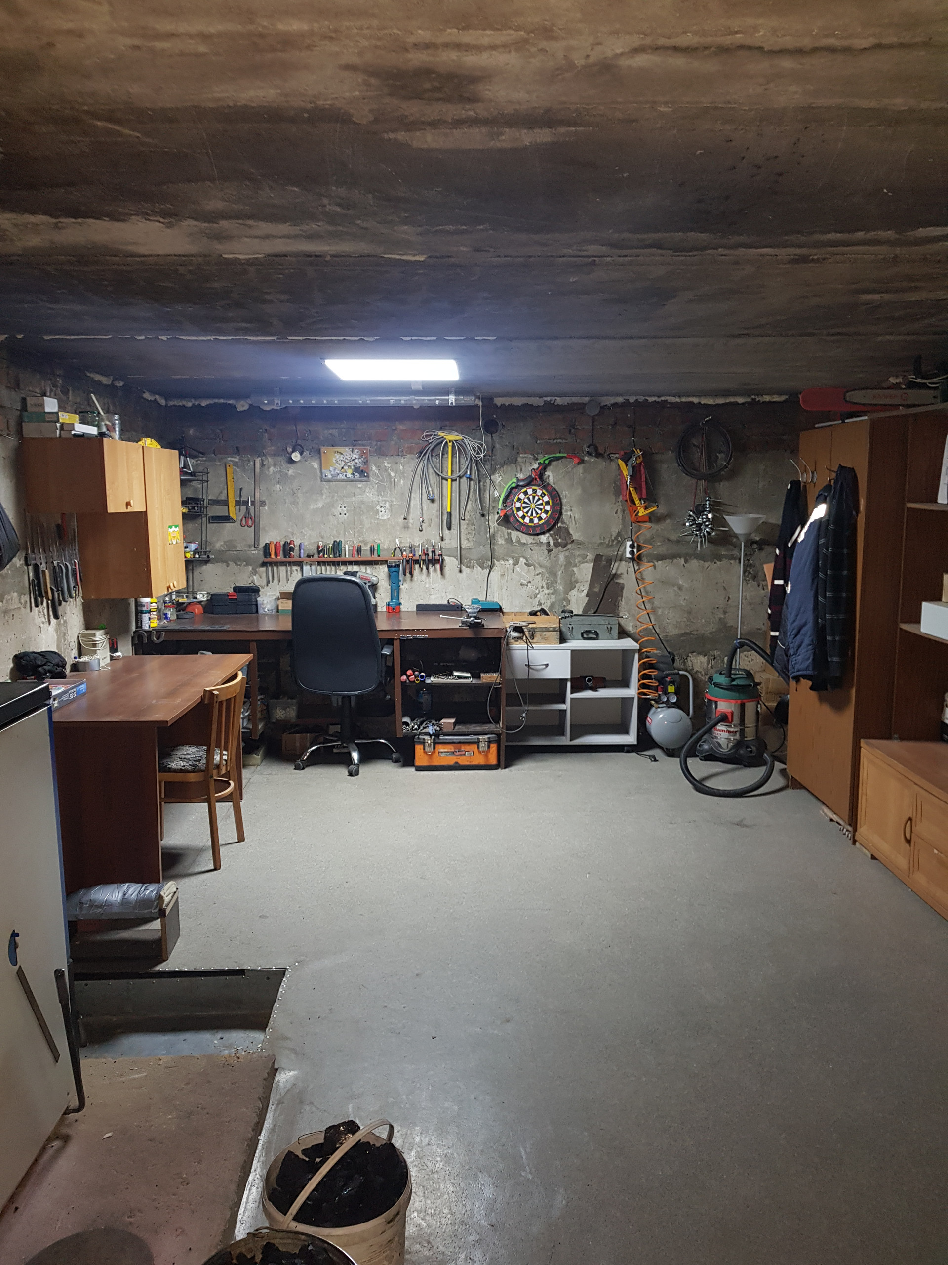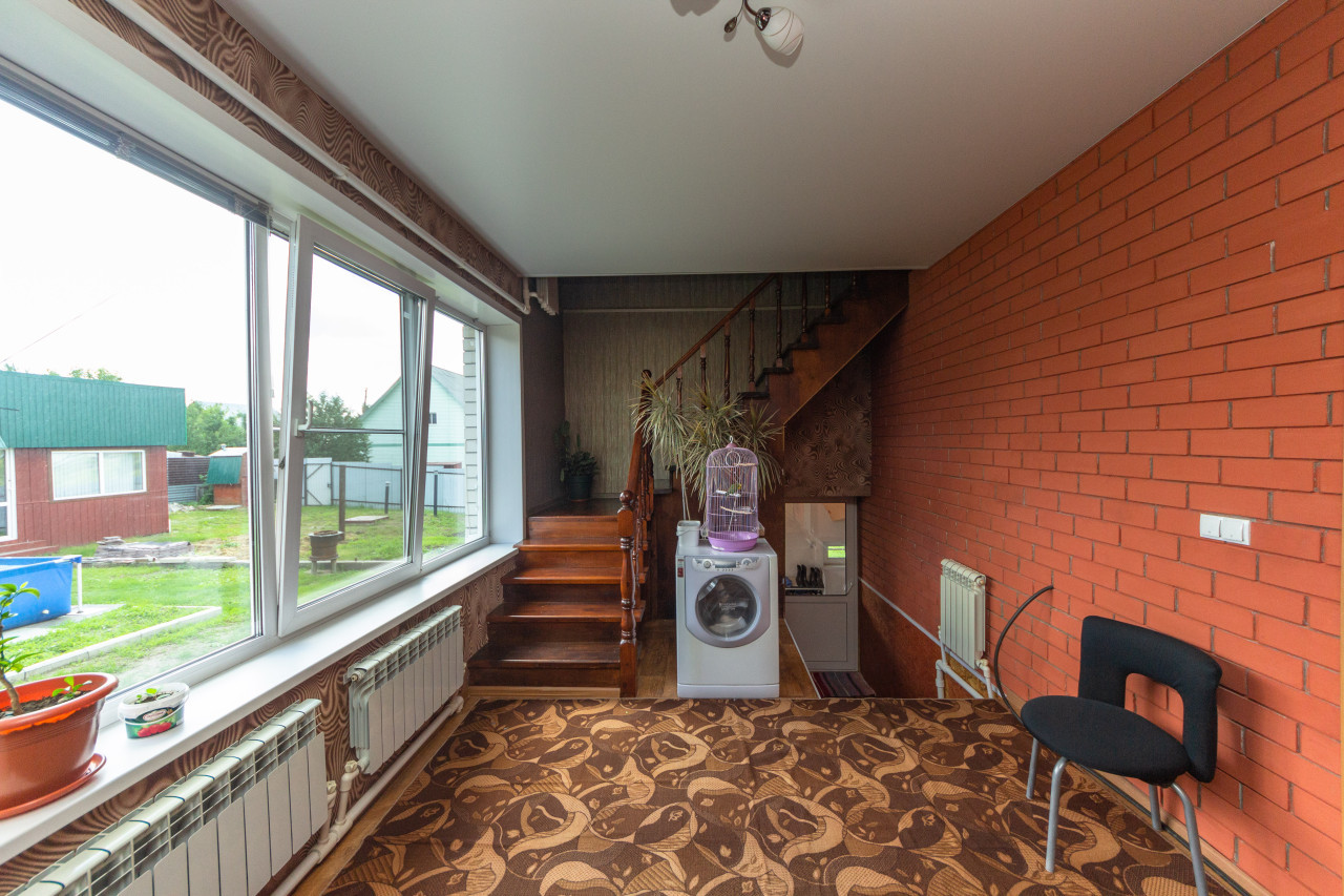 В доме имеется два входа. Через веранду попадаем в прихожую на первом этаже, где расположены лестница на второй этаж и вход в подвал. В доме имеется цокольный этаж общей площадью более 60 кв.м. здесь оборудована котельная так же расположена комната для готовки и хранения продуктов, которая служит подсобным помещением, мастерская, которую можно использовать под тренажерный зал.