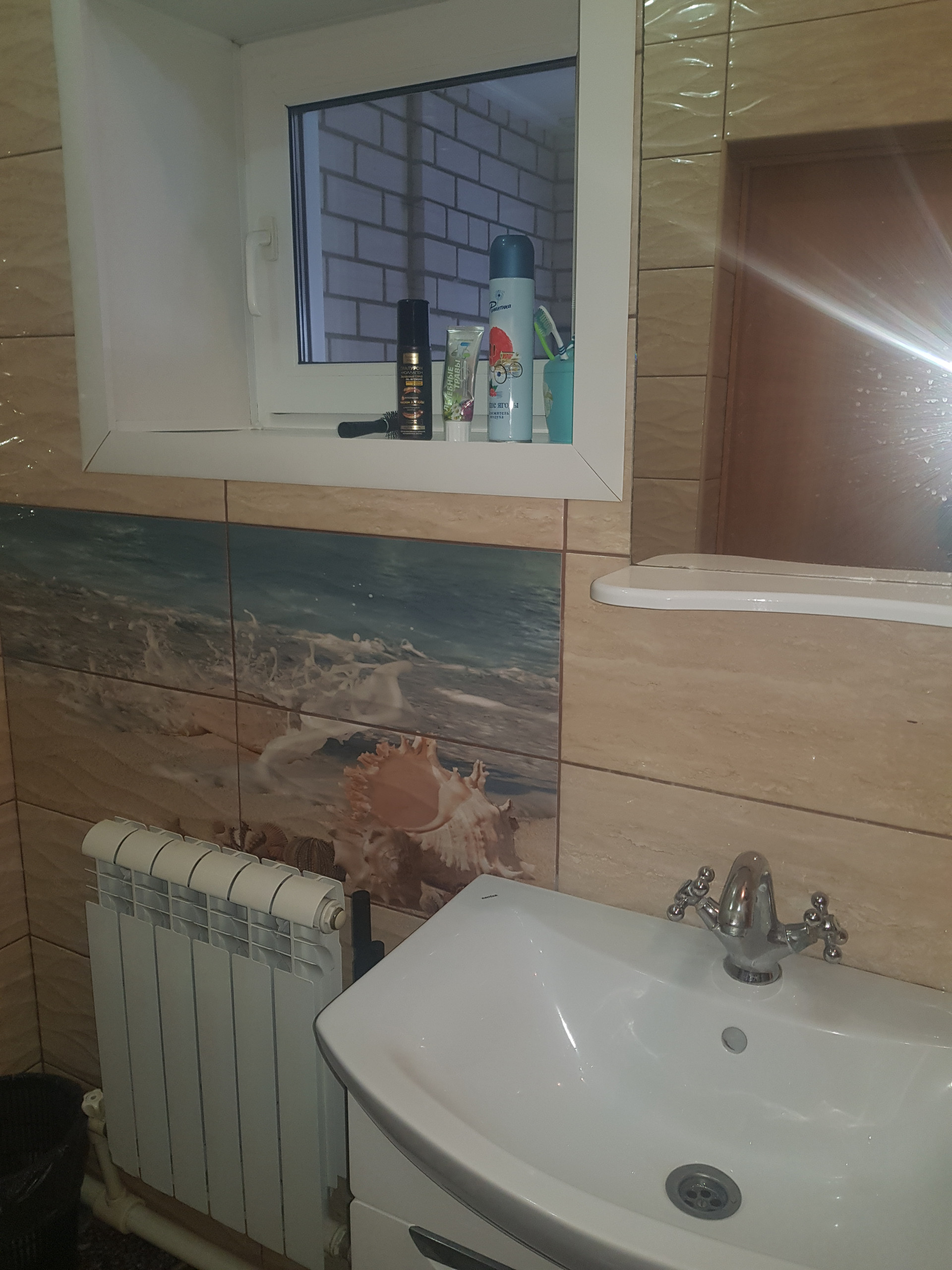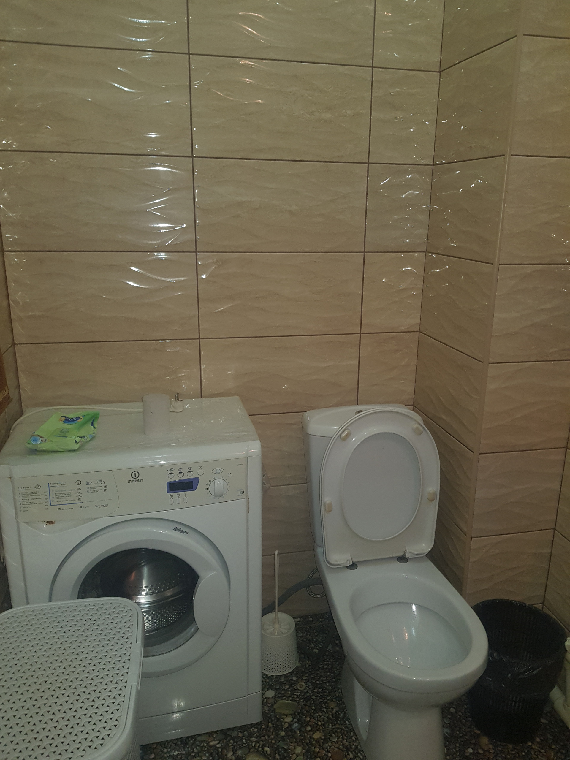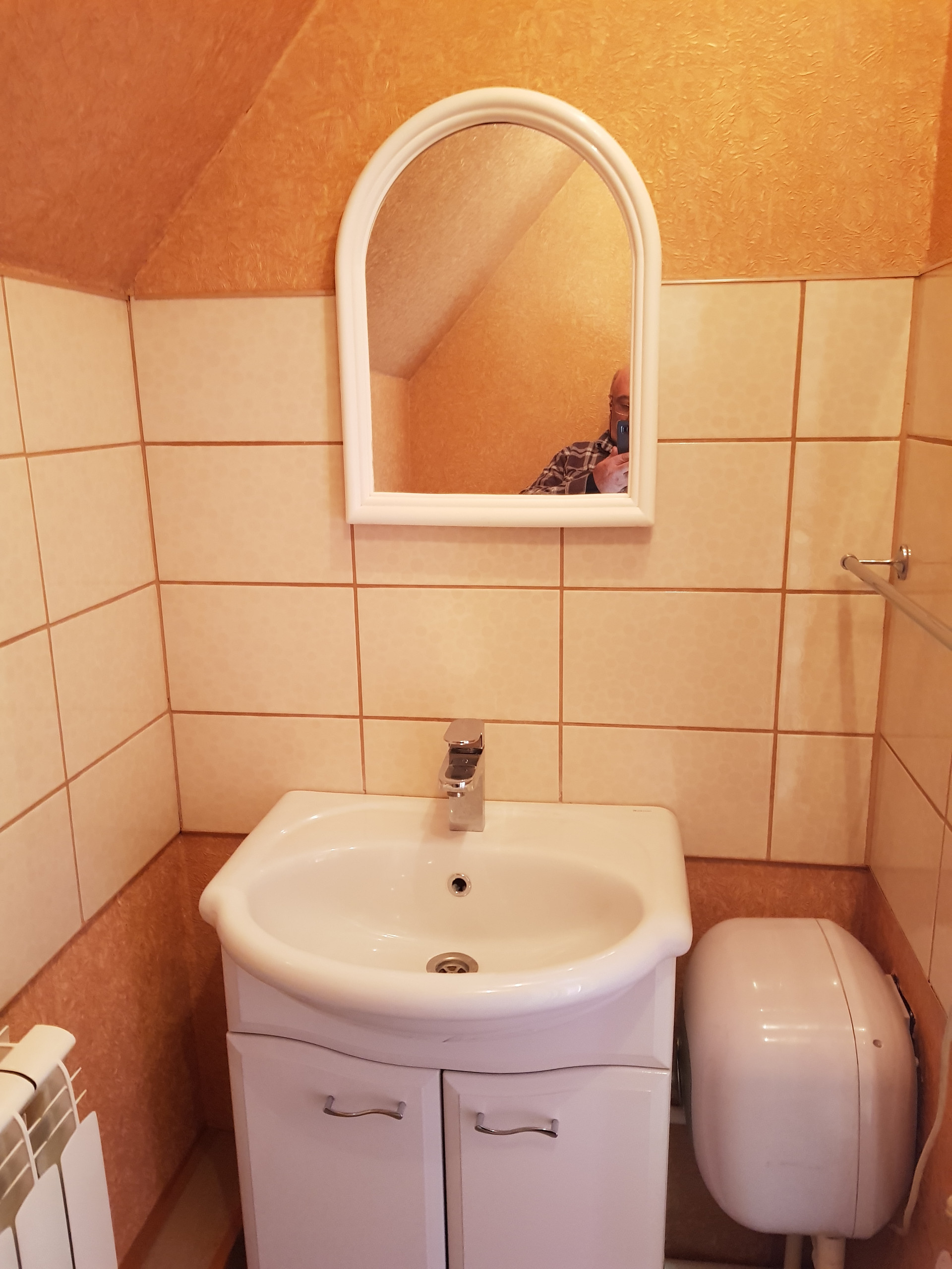 Стены в санузлах отделаны кафелем, на полу керамическая плитка