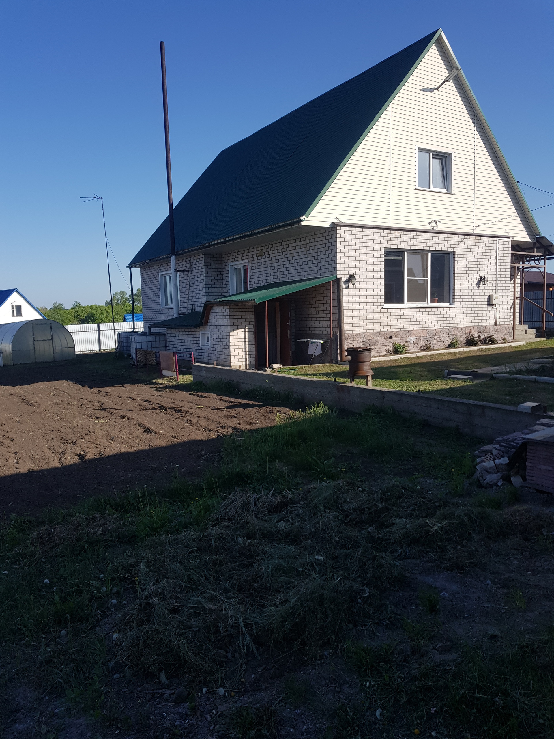 Земля за домом облагорожена, имеется плодоносящий сад ( малина, , клубника) теплица, очень много цветов,и есть погреб 4 на 4