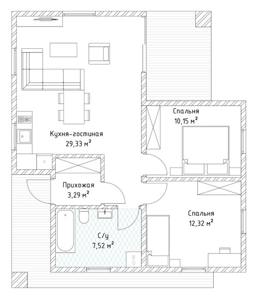 Общая площадь 82 м2