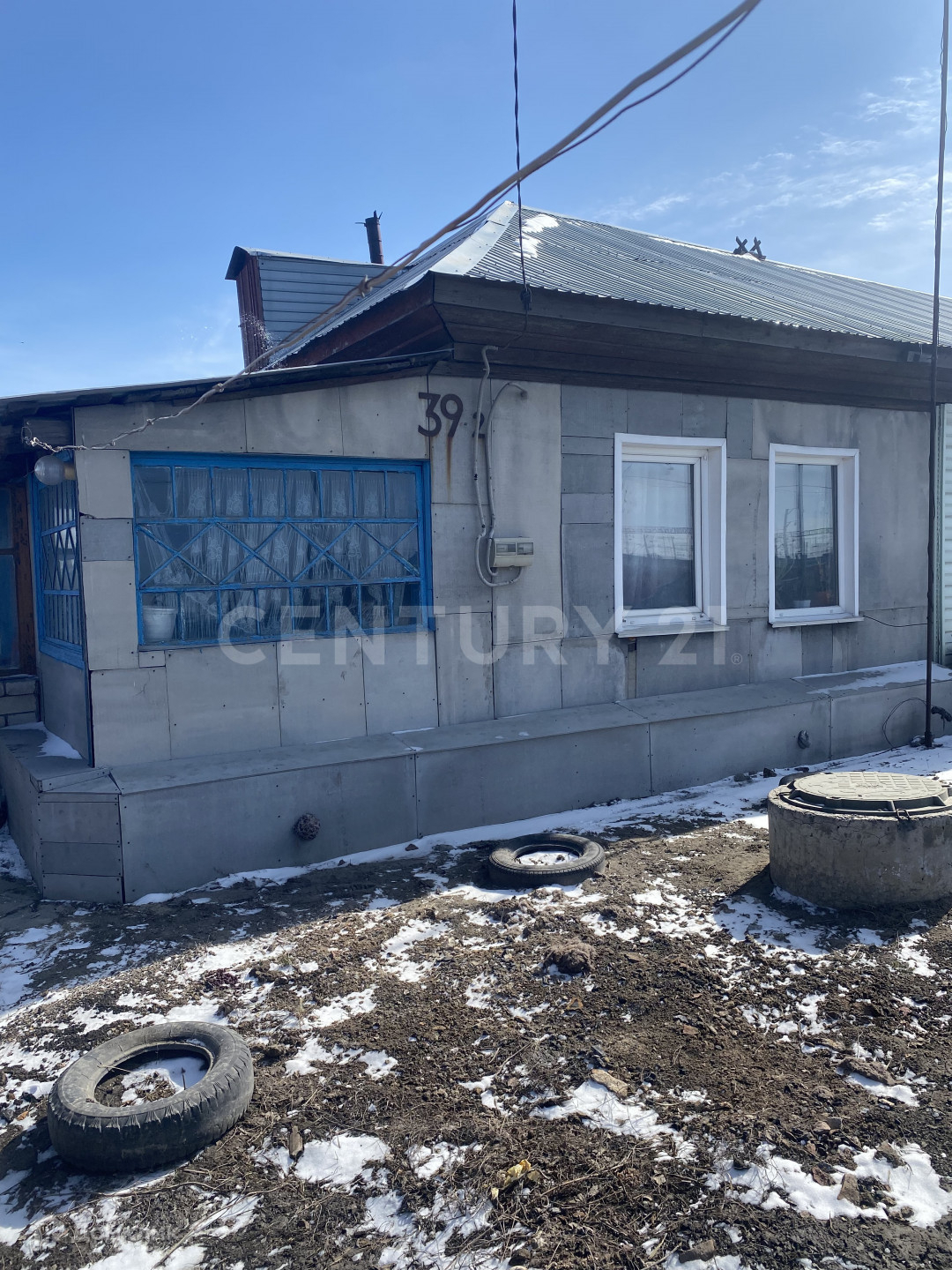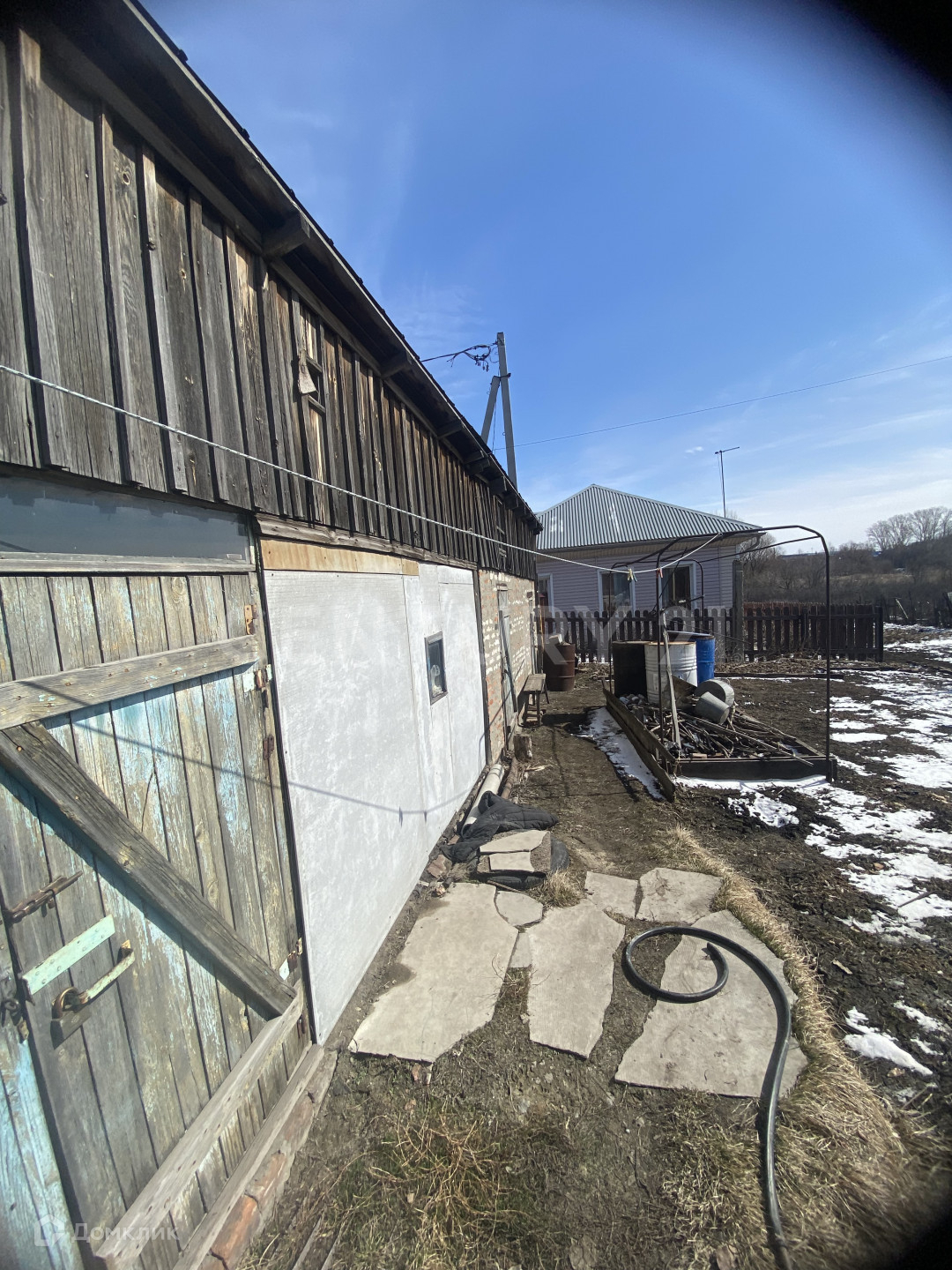 Дом построен из шпалы и обшит шифером,крыша новая металлопрофиль ,окна пластиковые,заменена проводка.