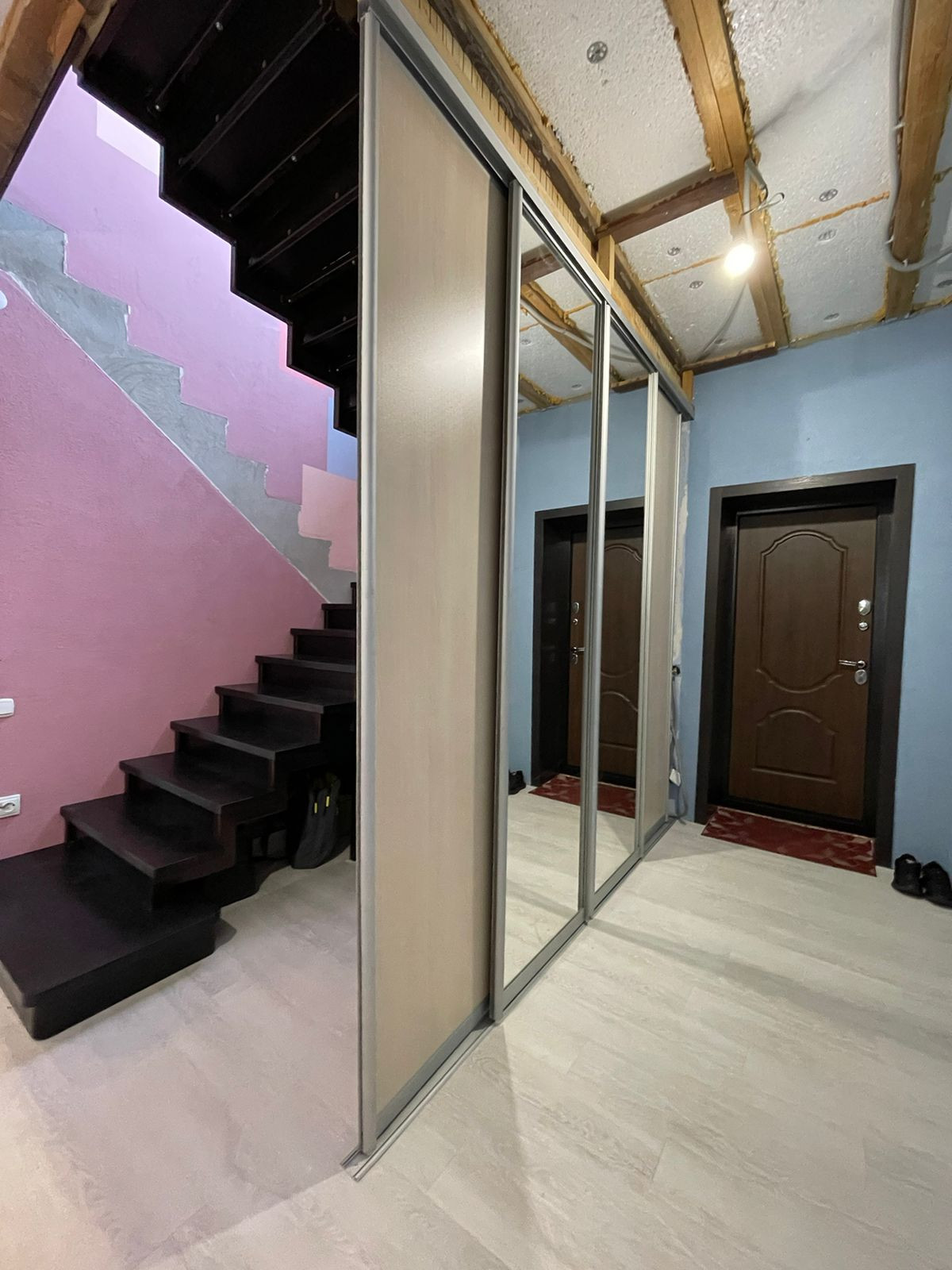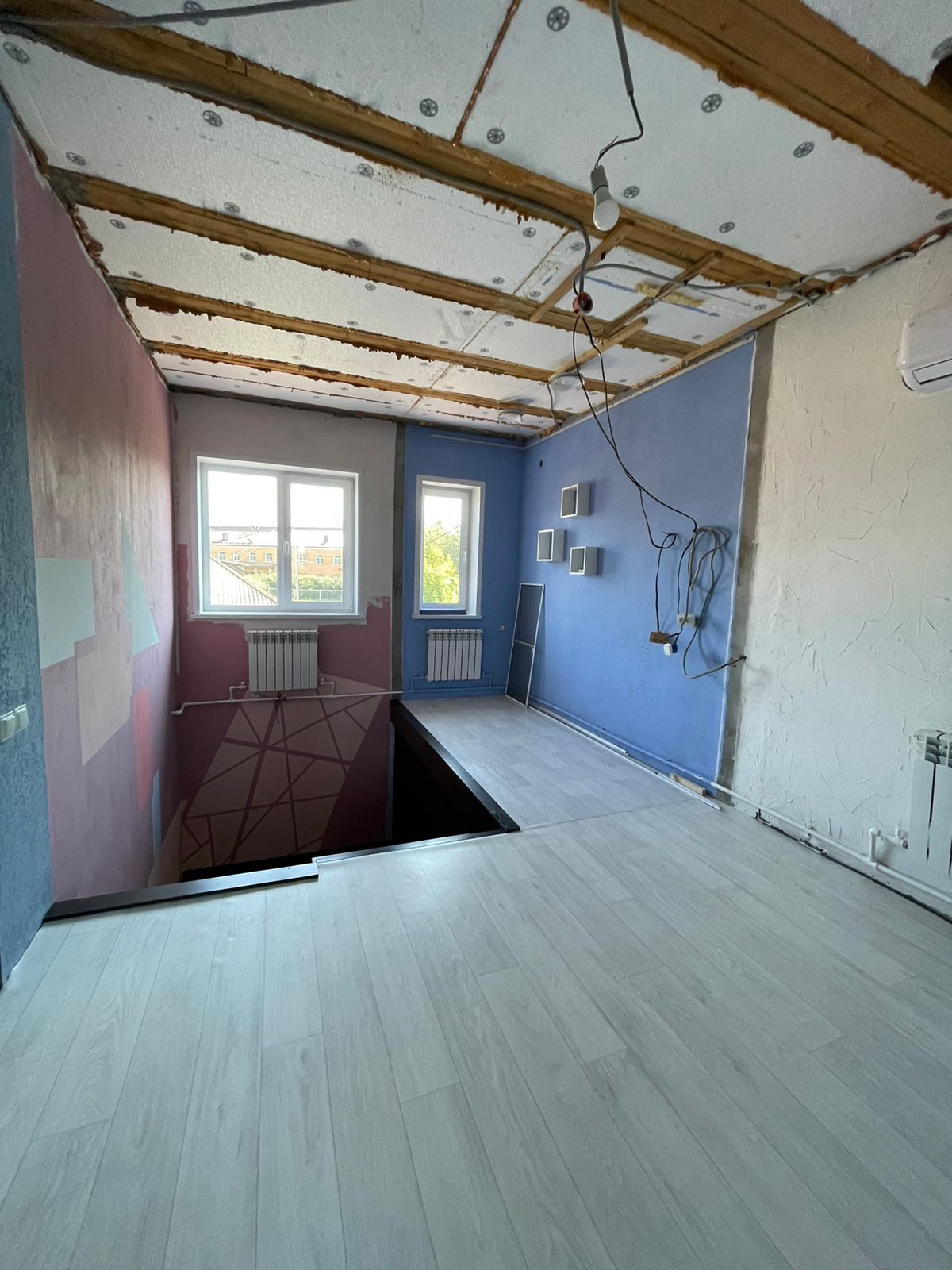 Новая лестница; гардеробная; 2 кладовки; санузел на каждом этаже; холл 8 кв.м с кондиционером; небольшой уголок с окном под кабинет; просторная кухня, столешница из искусственного камня; в зале установлен второй кондиционер.
