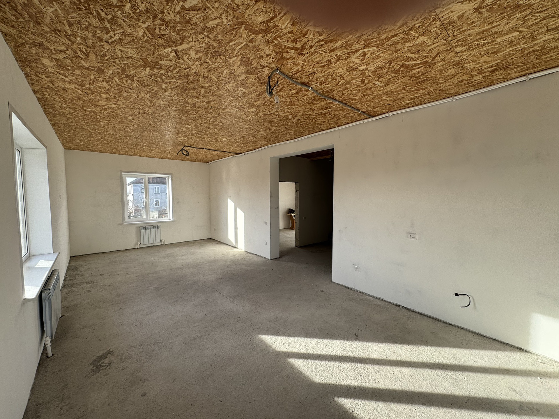 Второй этаж - две спальни и место под гардеробную.В доме тёплые полы ,центральное водоснабжение,газовое отопление,местная канализация.