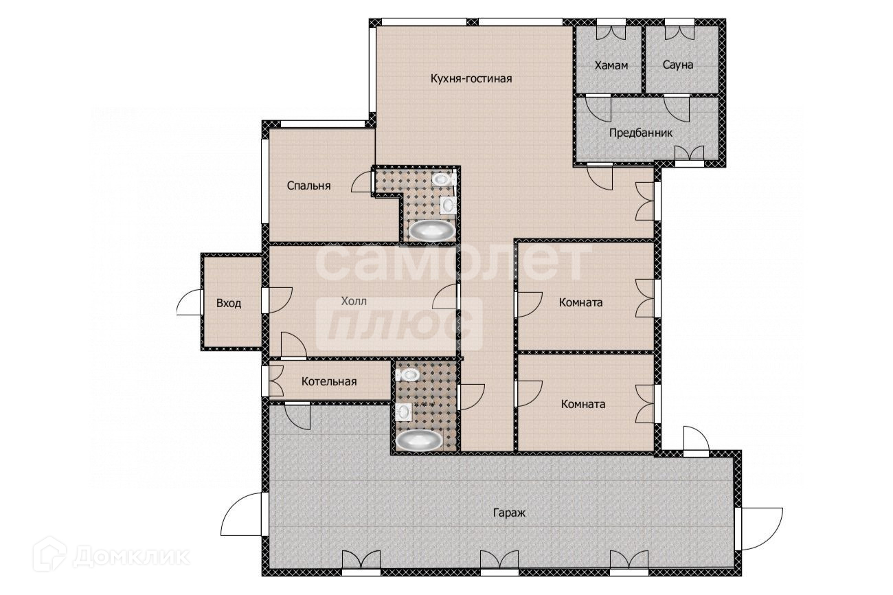 -два просторных санузла