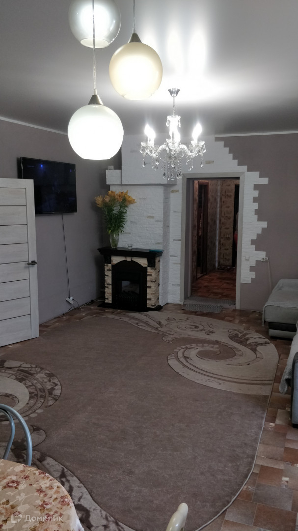 В доме современный ремонт, в зале электрический камин.