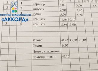 Продам 1-комнатную квартиру, 44.07 м2, Прудская улица, 40