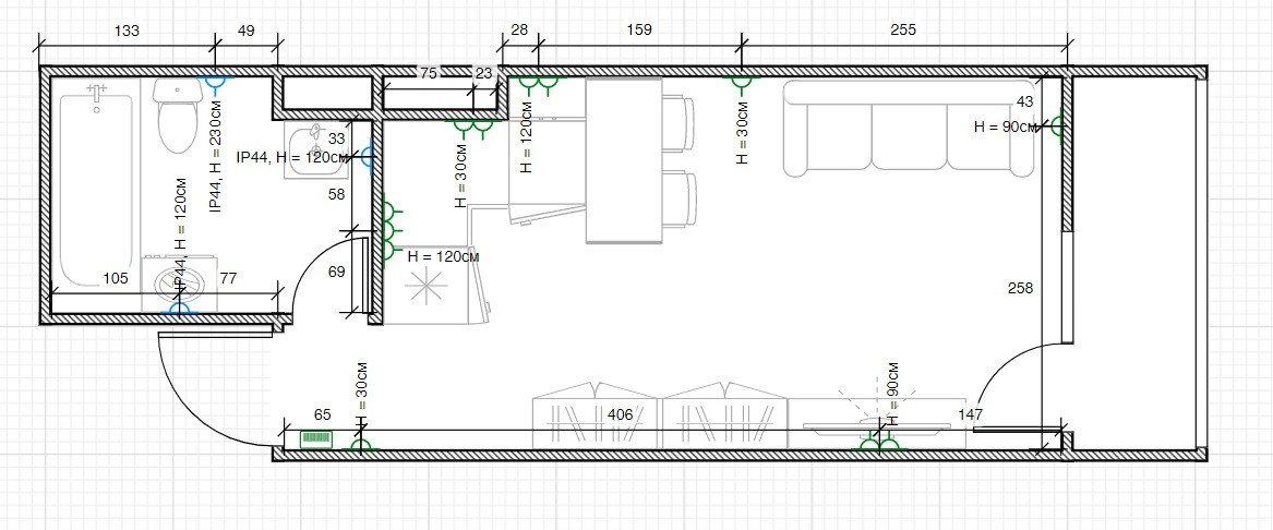 Площадь кухни 3 м2