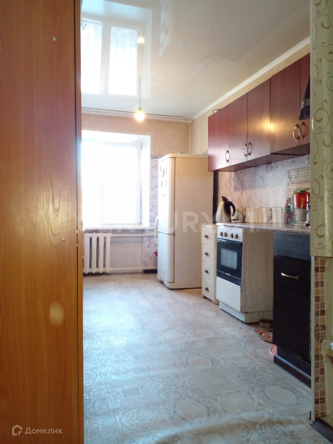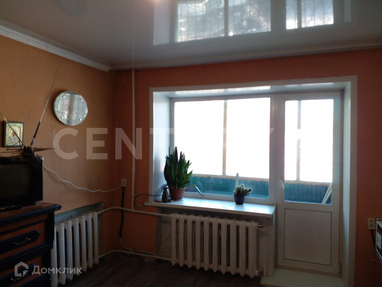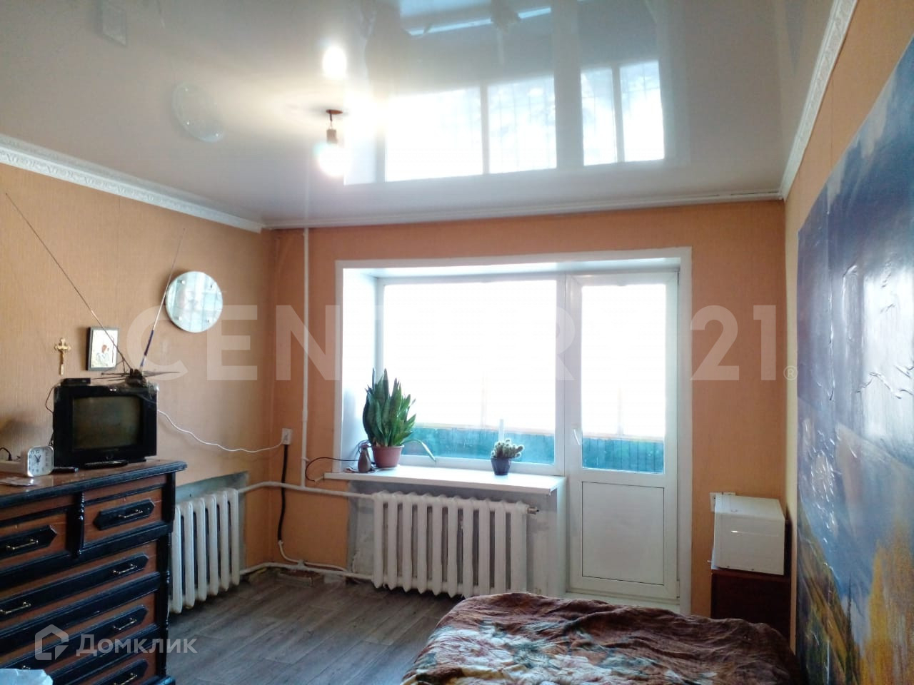 В квартире натяжные потолки, на полу линолеум.В Квартире аккуратно и чисто. Балкон застеклен.