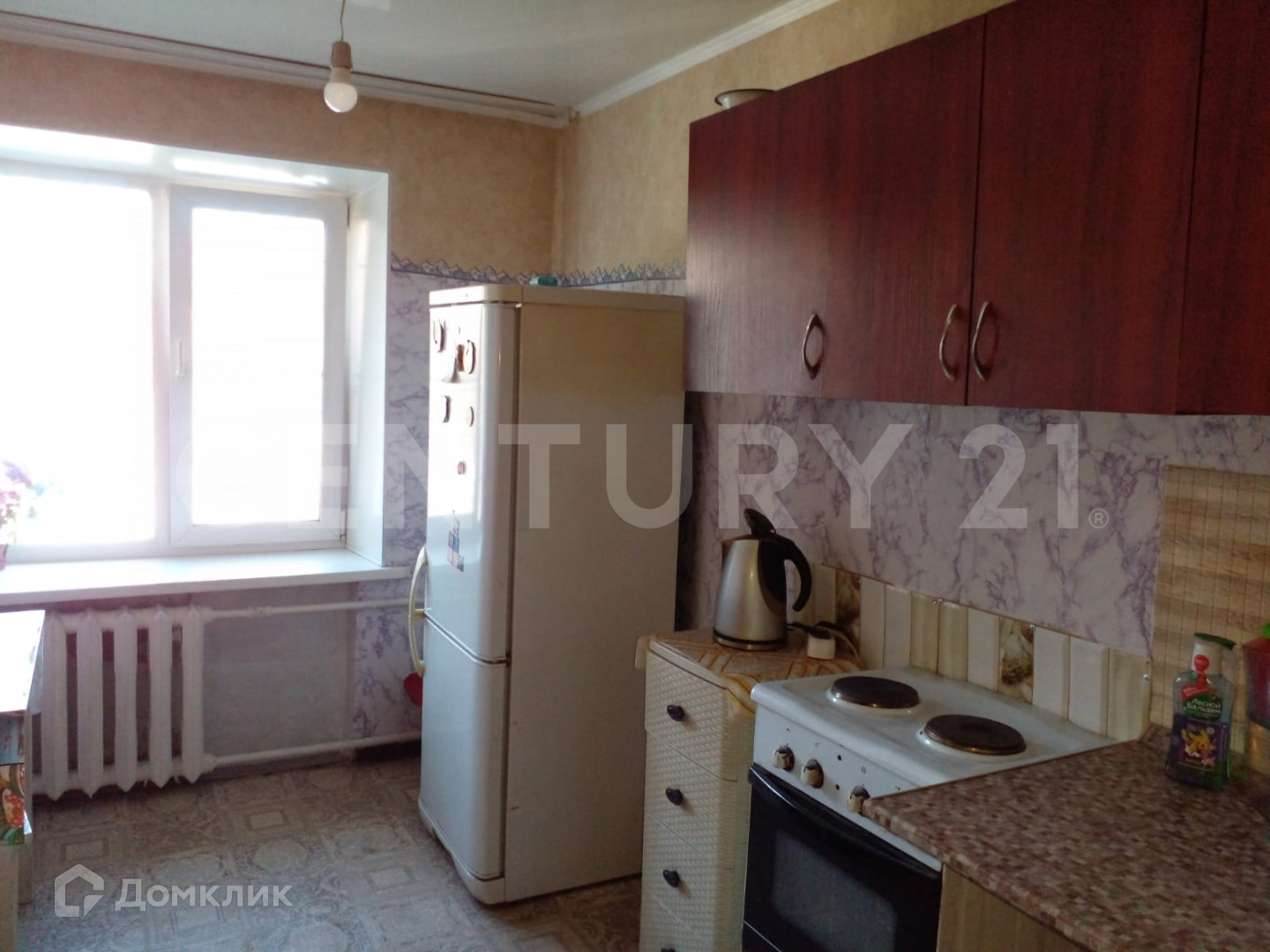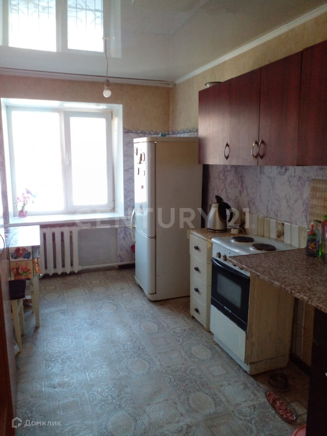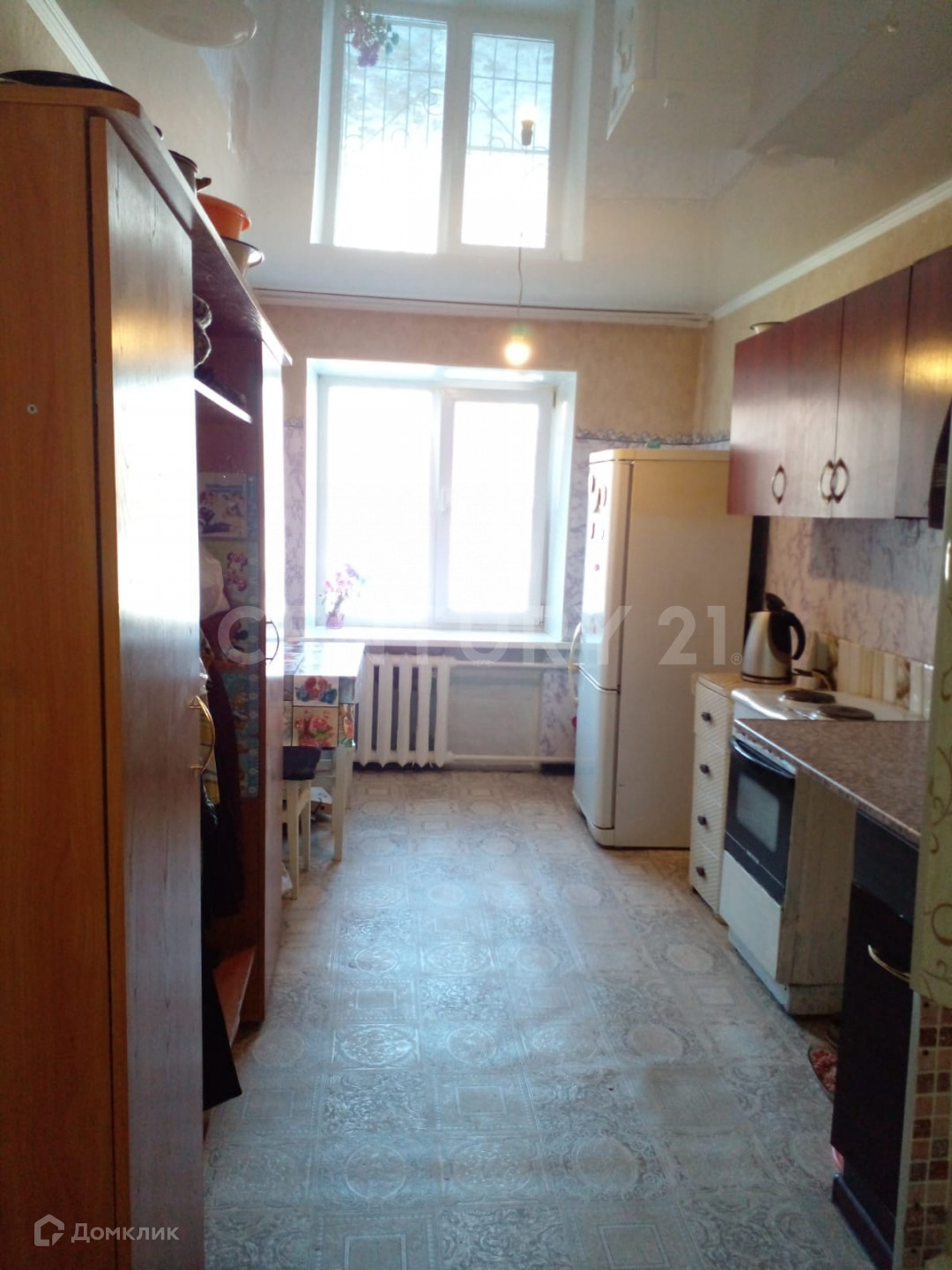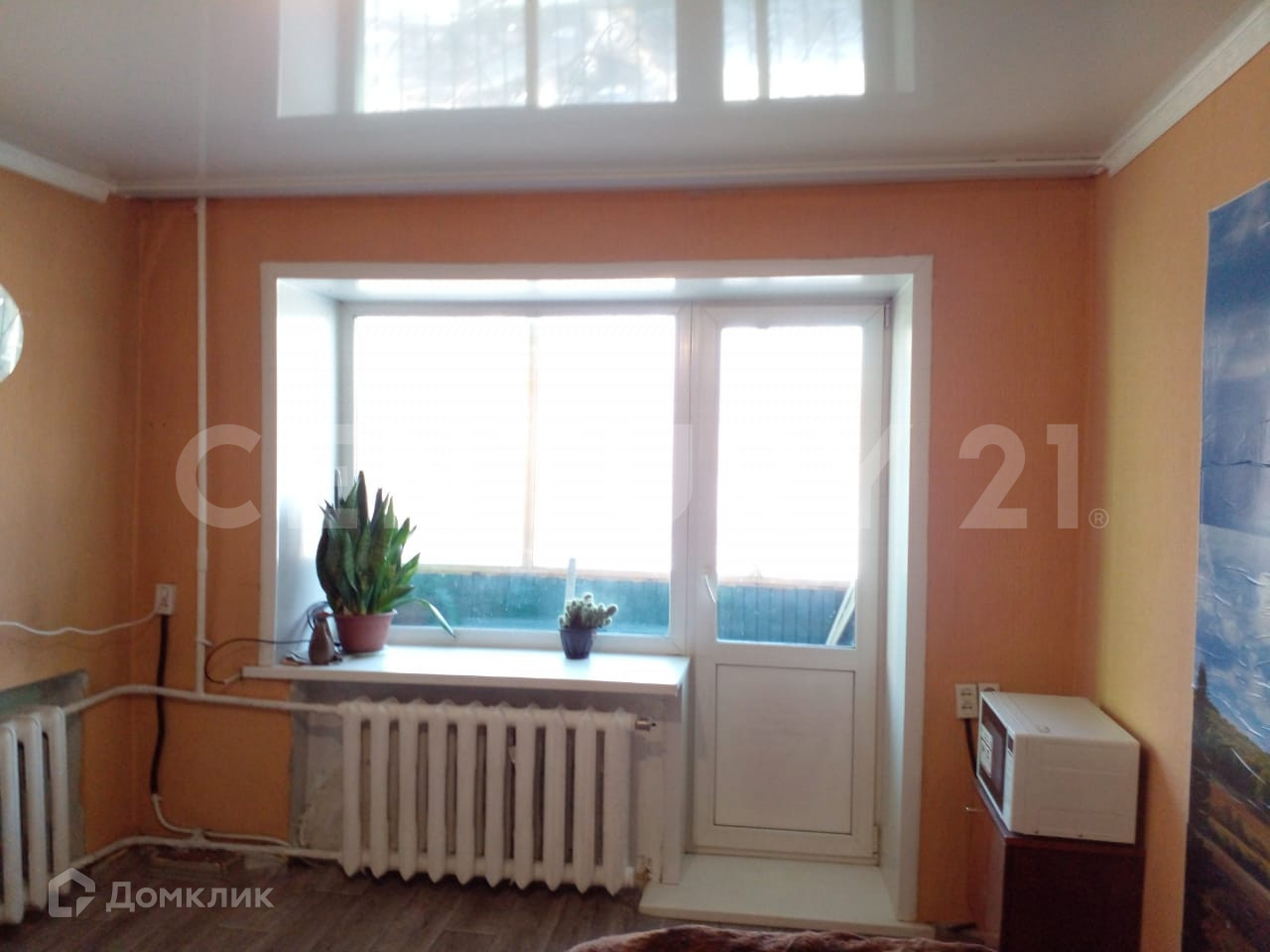 В квартире натяжные потолки, на полу линолеум.В Квартире аккуратно и чисто. Балкон застеклен.