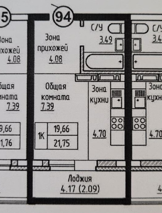 Жилая площадь 19.7 м2