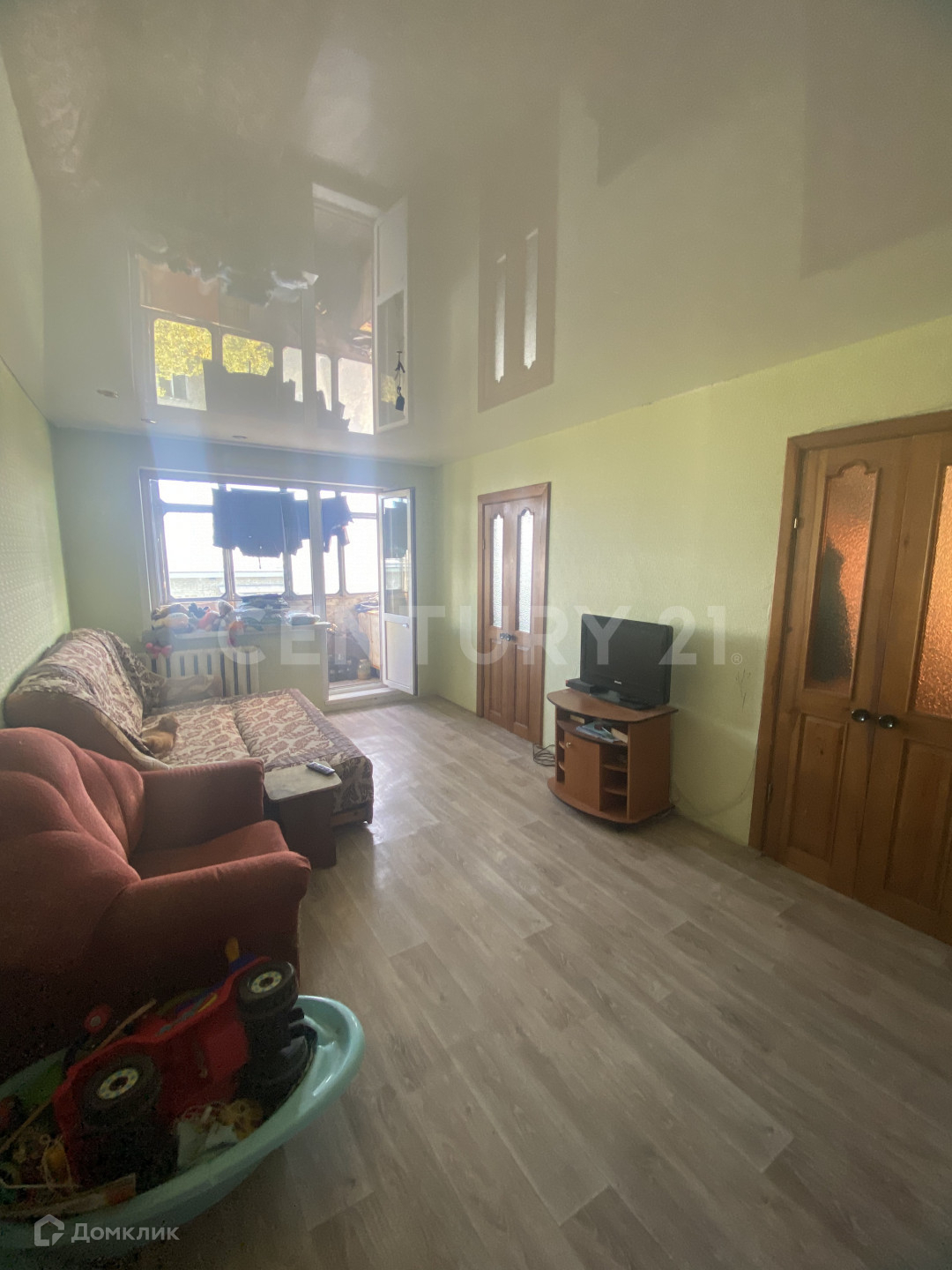 В квартире косметический ремонт,пластиковые окна,в двух комнатах натяжные потолки,стены и потолки выровнены ,балкон застеклен.