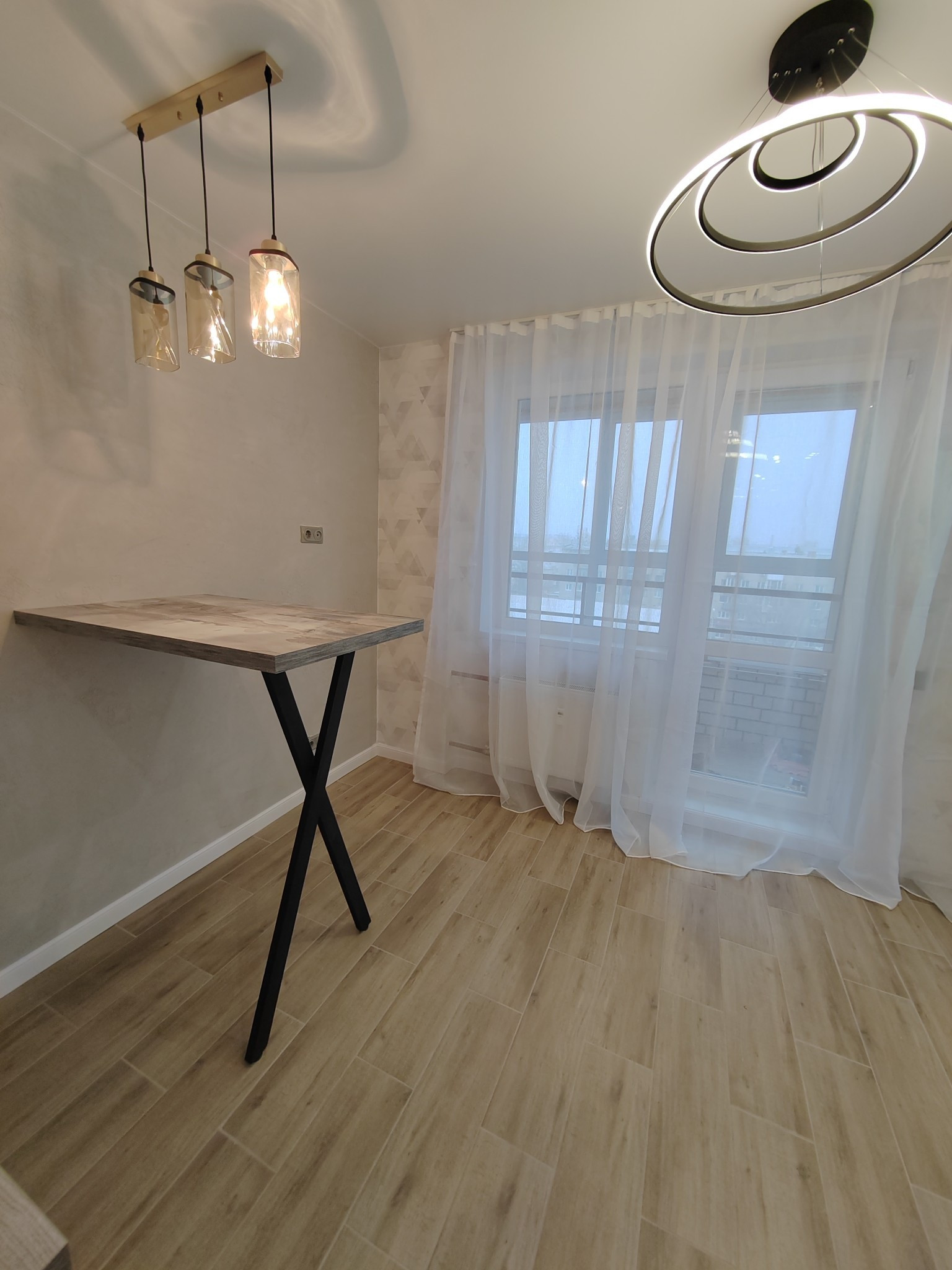 В квартире много света, продумано несколько источников освещения.