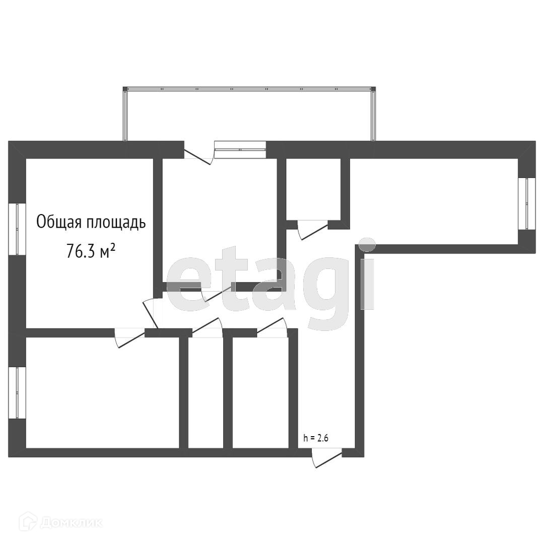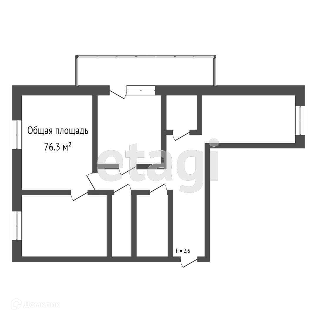 Общая площадь - 76,3 кв.м.