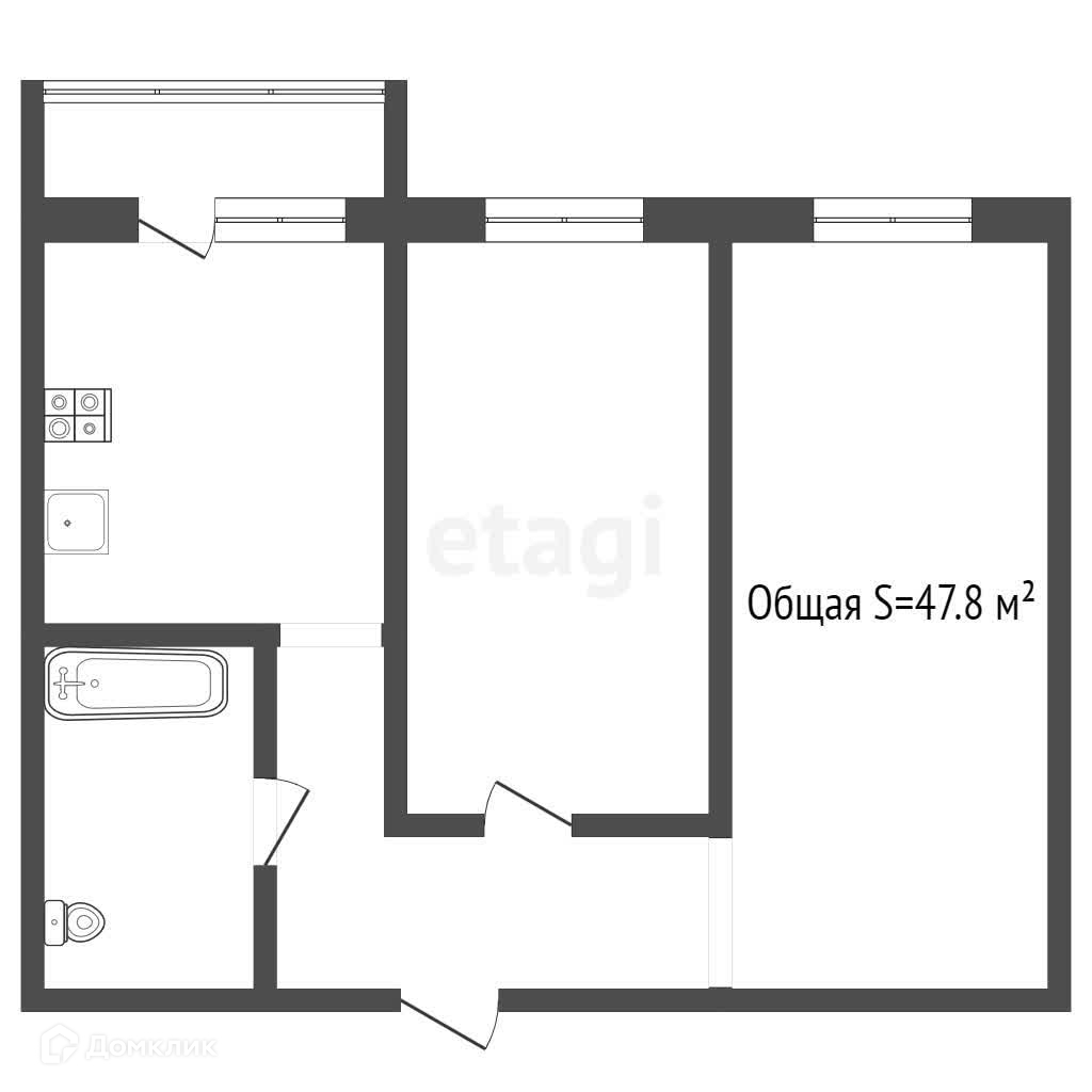 Общая площадь 47.8 м2